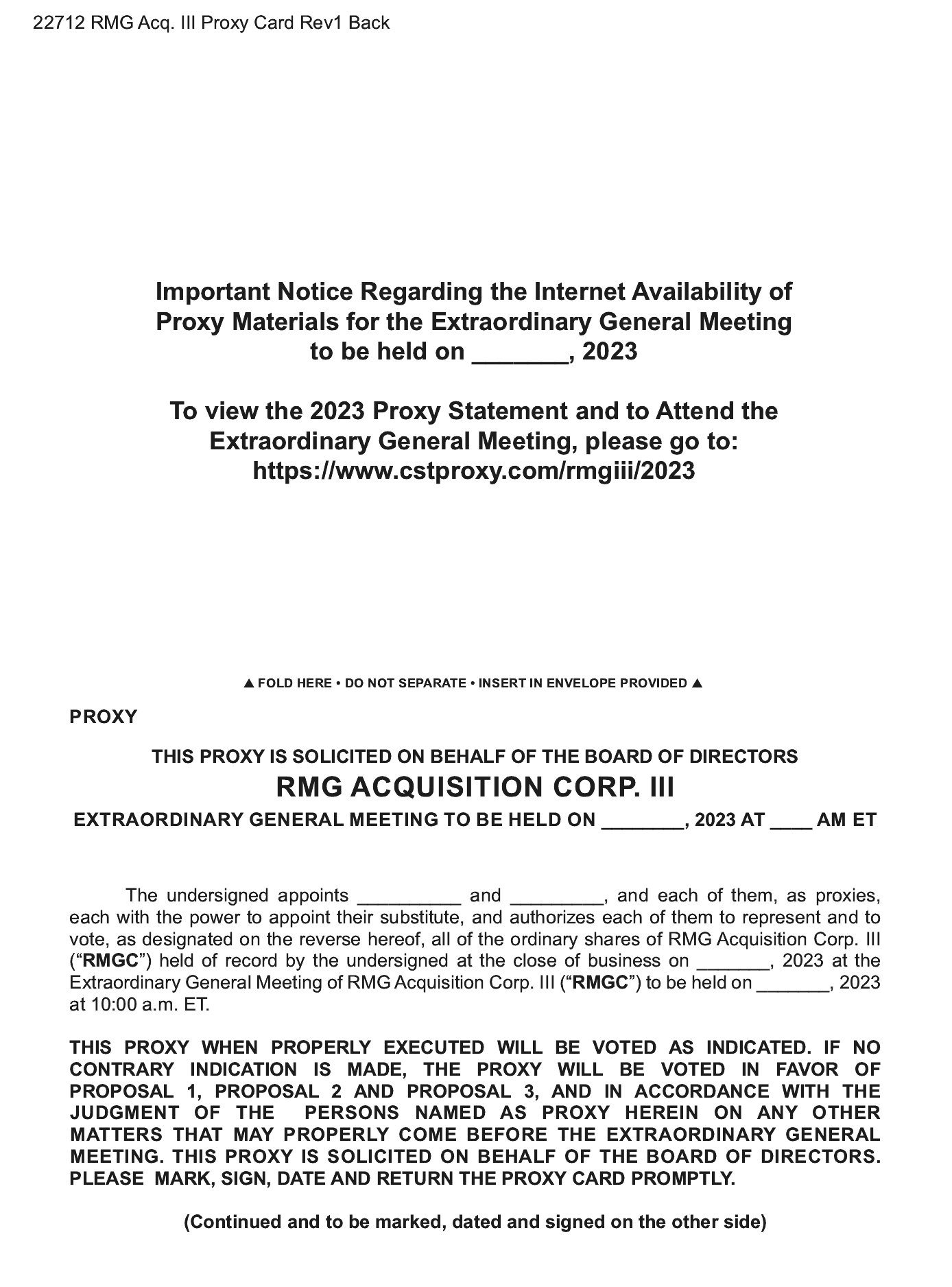 The Company’s sponsor is RMG Sponsor III, LLC, a Delaware limited liability company. The Sponsor currently owns an aggregate of 12,075,000 Ordinary Shares, all of which are Class B Ordinary Shares. The Sponsor is controlled by its manager, MKC Investments LLC (the “Manager”). Robert S. Mancini, the Company’s Chief Executive Officer and a Member of the Board, D. James Carpenter, the Chairman of the Board, and Philip Kassin, the Company’s President, Chief Operating Officer, and a member of the Board, are the managing members of the Manager. Each of the Company’s directors and officers is a U.S. citizen.