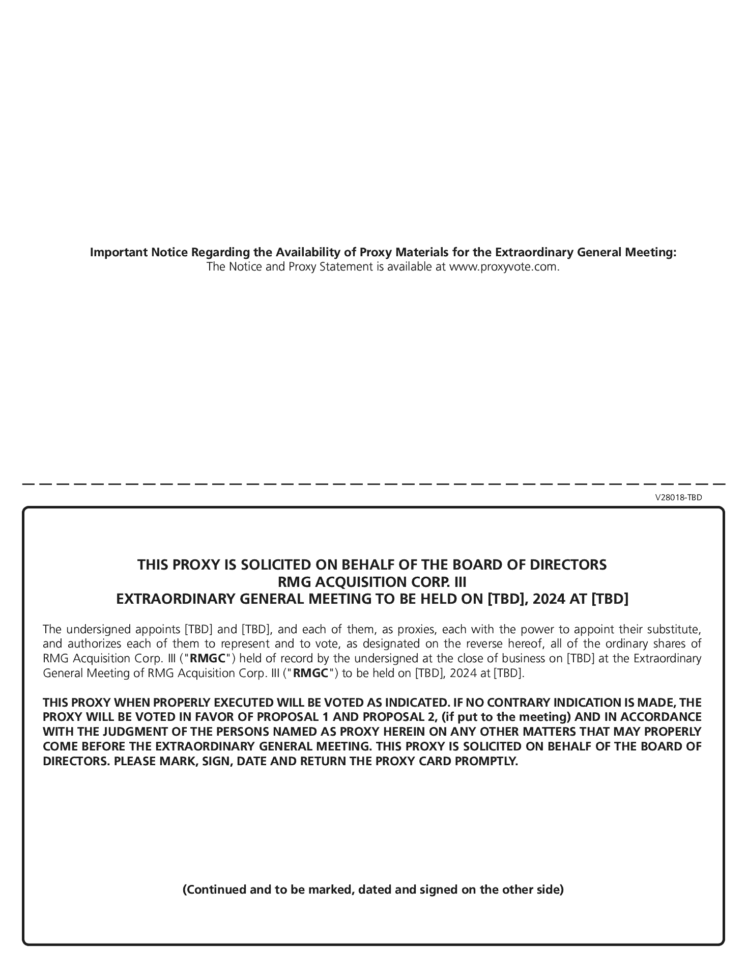 RMG III is a blank check company incorporated on December 23, 2020 as a Cayman Islands exempted company for the purpose of effecting a merger, share exchange, asset acquisition, share purchase, reorganization or similar business combination with one or more businesses (an “initial business combination”).
