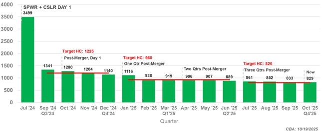 SunPower closed the strategic acquisition of Sunder Energy to create the No. 5 residential solar company in the U.S.* This transformative acquisition expands SunPower’s reach from 22 to 45 states, increases its dealer salesforce from 881 to 1,744 as of last week and is anticipated to increase our bookings in Q4’25 by slightly over 2x. (Remember, a 2x increase in bookings equates to a 1.3x increase in revenue until the new orders are also installed by SunPower in 2026.)