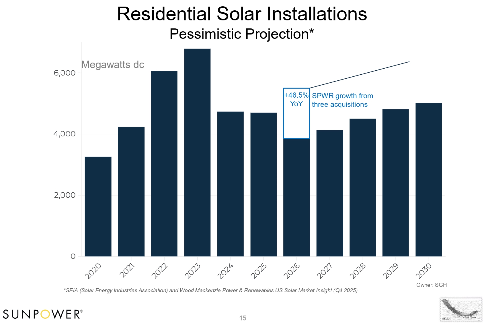 *SEIA (Solar Energy Industries Association) and Wood Mackenzie Power & Renewables US Solar Market Insight (Q4 2025) Residential Solar Installations Pessimistic Projection* Owner: SGH +46.5% YoY Megawatts dc SPWR growth from three acquisitions 15