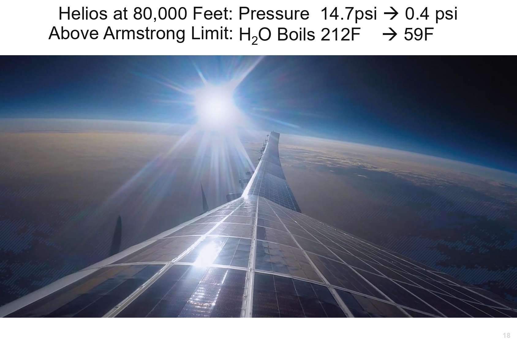 Helios at 80,000 Feet: Pressure 14.7psi 0.4 psi 18 59F Above Armstrong Limit: H 2 O Boils 212F