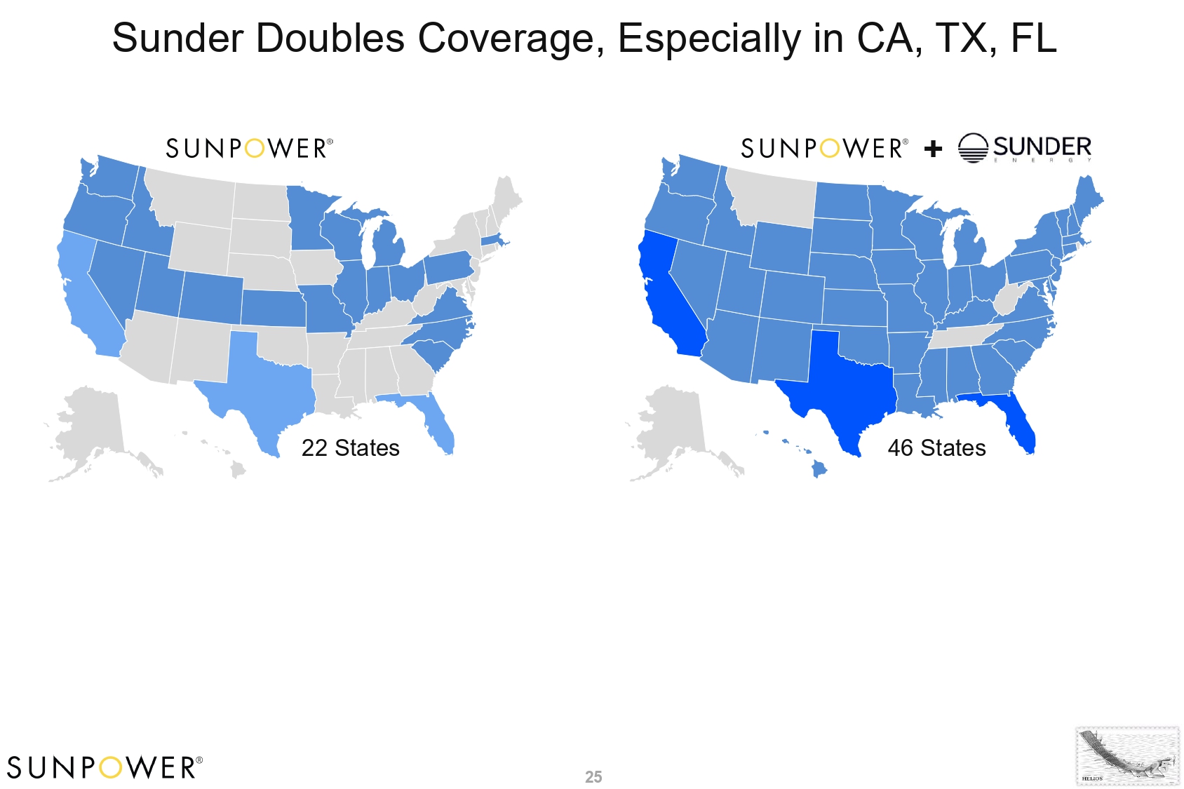 + 22 States 46 States Sunder Doubles Coverage, Especially in CA, TX, FL 25 25