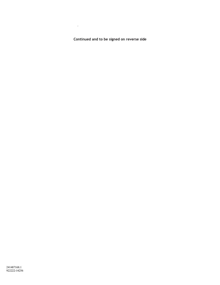| 241487168.1 922222-14256 Continued and to be signed on reverse side |