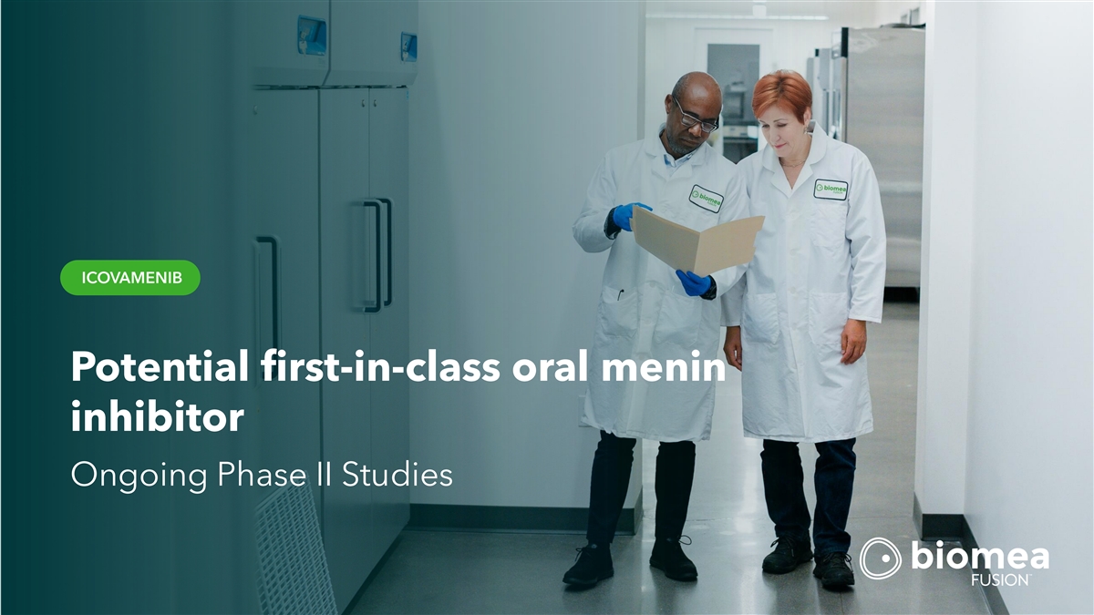 ICOVAMENIB Potential first-in-class oral menin inhibitor Ongoing Phase II Studies