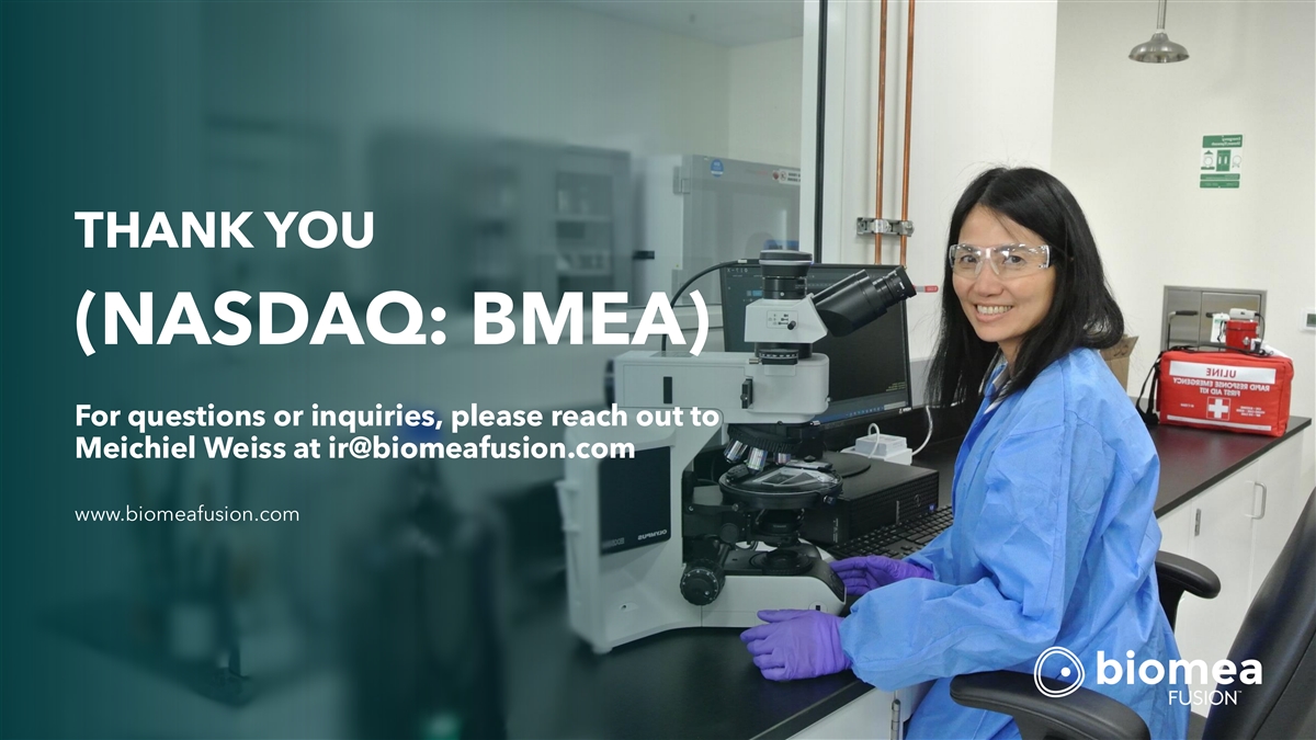 THANK YOU (NASDAQ: BMEA) For questions or inquiries, please reach out to Meichiel Weiss at ir@biomeafusion.com www.biomeafusion.com