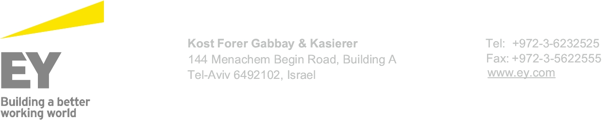 | Michael Kaplan  Lee Hochbaum Davis Polk & Wardwell LLP 450 Lexington Avenue New York, New York 10017 Tel: (212) 450-4000 |  |  | Shachar Hadar  Assaf Naveh  Ran Camchy Meitar Law Offices  16 Abba Hillel Silver Rd.  Ramat Gan 52506, Israel  Tel: (+972) (3) 610-3100 |