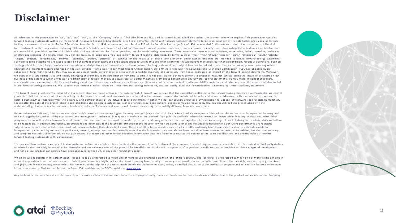 or the “Company” refer to ATAI Life Sciences N.V. and its consolidated subsidiaries, unless the context otherwise requires. This presentation contains forward-looking stateme nts within the meaning of the private Securiti es Litigation