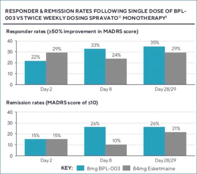 The phase 2b study of BPL-003 met its primary and all key secondary endpoints, and BPL-003 demonstrated rapid, robust and durable antidepressant effects with a single dose.