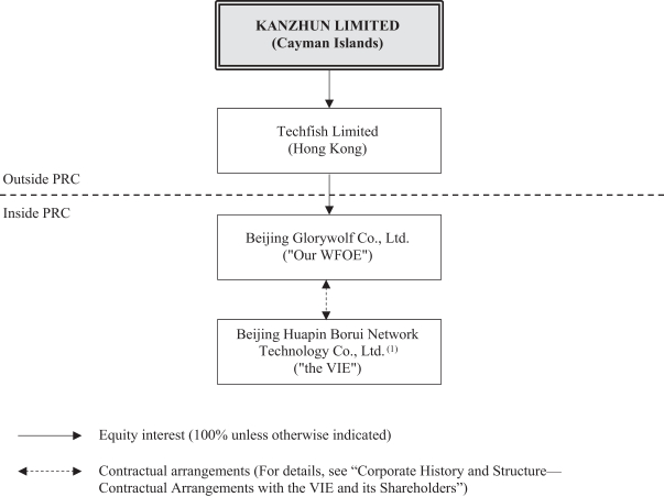 | • | “Kanzhun,” “we,” “us,” “our company” and “our” are to KANZHUN LIMITED, our Cayman Islands holding company and its subsidiaries, and in the context of describing our operations and consolidated financial information, the VIE in China, including but not limited to Beijing Huapin Borui Network Technology Co., Ltd.; |