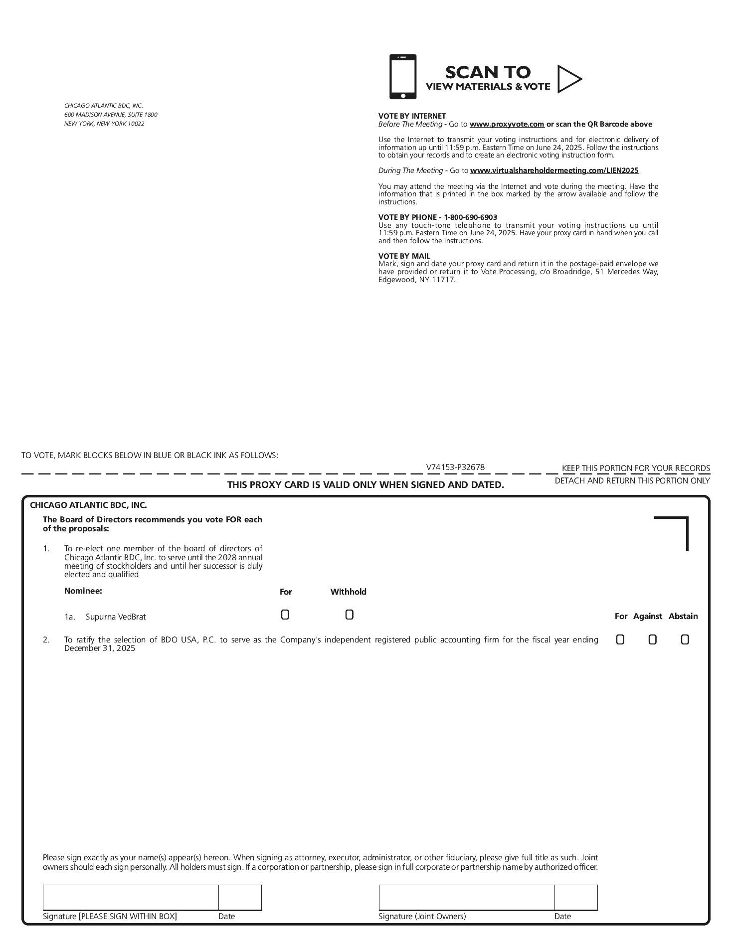 There have been no material changes to the Company’s Code of Business Conduct and Ethics or material waivers of the Code of Business Conduct and Ethics that apply to the Company’s Chief Executive Officer or Chief Financial Officer. If the Company makes any substantive amendment to, or grants a waiver from, a provision of its Code of Business Conduct and Ethics, the Company will promptly disclose the nature of the amendment or waiver on its website at lien.chicagoatlantic.com or in a Current Report on Form 8-K.