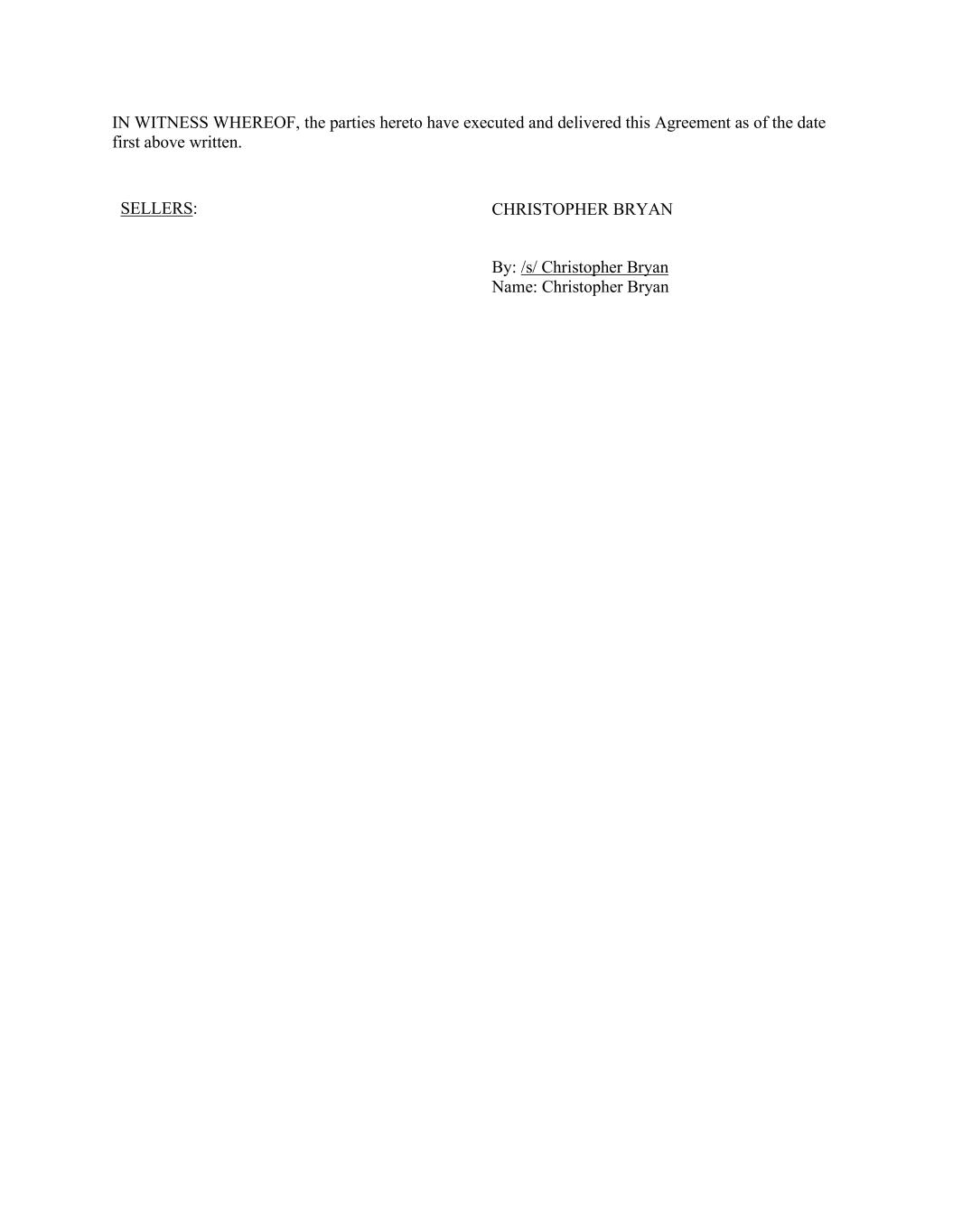 IN WITNESS WHEREOF, the parties hereto have executed and delivered this Agreement as of the date first above written. SELLERS: CHRISTOPHER BRYAN By: /s/ Christopher Bryan Name: Christopher Bryan