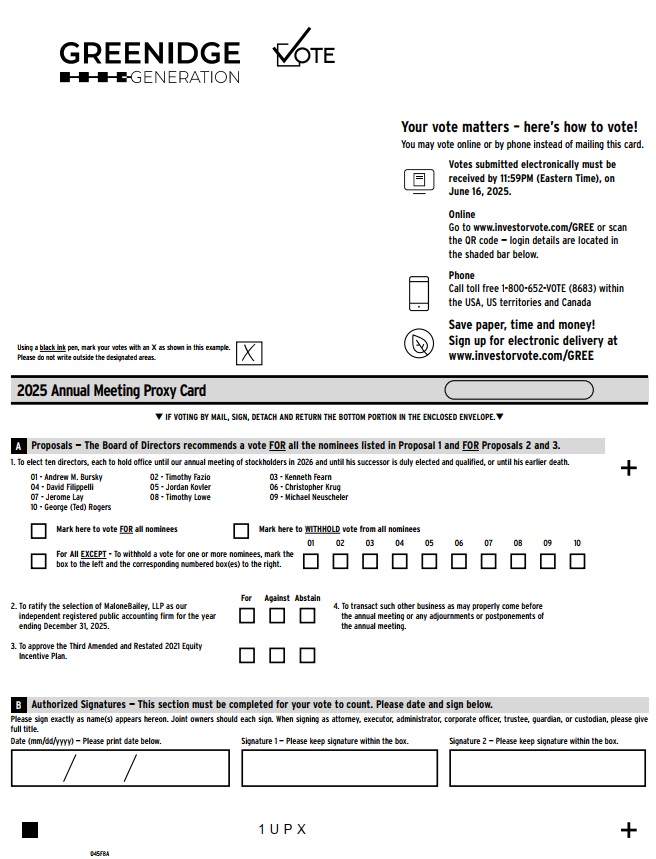| • | By Internet: Go to www.investorvote.com/GREE and follow the instructions, 24 hours a day, seven days a week. You will need the control number included on your proxy card. | |