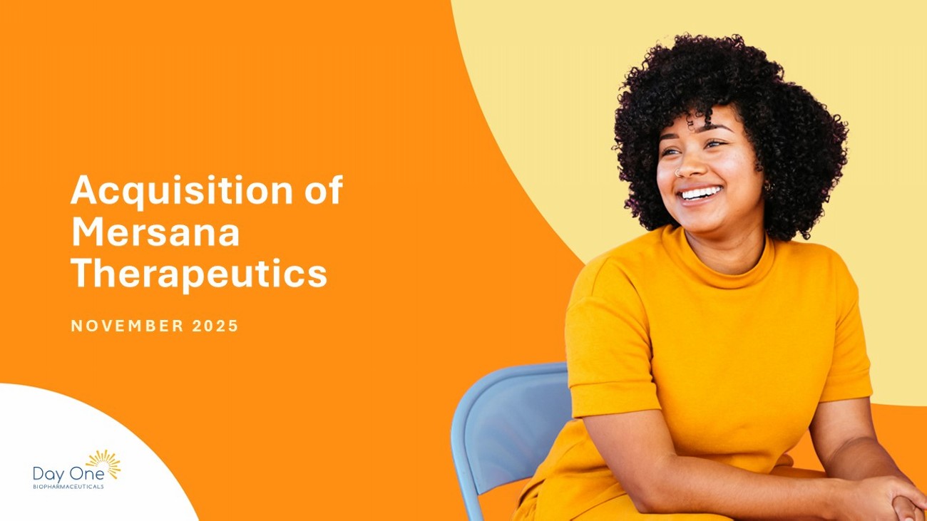 Forward Looking Statements 3 This communication contains forward - looking statements. Forward - looking statements are generally identified by the words “expect s”, “anticipates”, “believes”, “intends”, “estimates”, “plans”, “will”, “goal” and similar expressions. These forward - looking statem ents include, without limitation, statements related to the anticipated consummation of the acquisition of Mersana and the expected benefit s t herefrom; and other statements that are not historical facts. These forward - looking statements are based on Day One’s current expectations and inherently involve significant risks and uncertainties. Actual results and the timing of events could differ materially from tho se anticipated in such forward - looking statements as a result of these risks and uncertainties, which include, without limitation, risks related t o Day One’s ability to complete the transaction on the proposed terms and schedule, or at all; whether the various conditions to the cons umm ation of the transaction under the merger agreement will be satisfied or waived; whether stockholders of Mersana tender sufficient shares in the transaction; the occurrence of any event, change or other circumstance that could give rise to the termination of the merger agr eement; the outcome of legal proceedings that may be instituted against Day One, Mersana and/or others relating to the transaction and th e r isk that such legal proceedings may result in significant costs of defense, indemnification and liability; the failure (or delay) to receiv e t he required regulatory approvals relating to the transaction; the possibility that competing offers will be made; disruption from the pro pos ed transaction, making it more difficult to conduct business as usual or maintain relationships with customers, employees or suppliers; the r isk that Day One will not be able to retain the employees of Mersana following the closing of the transaction given the at - will nature of their e mployment; risks associated with acquisitions, such as the risk that the businesses will not be integrated successfully, that such integration ma y be more difficult, time - consuming or costly than expected or that the expected benefits of the transaction will not occur; risks associa ted with developing product candidates; risks and uncertainties related to unforeseen delays that may impact the timing of clinical tr ial s and reporting data; risks related to future opportunities and plans for Mersana and its product candidates, including uncertainty of the ex pec ted financial performance of Mersana and its product candidates and the possibility that the milestone payments related to the contingent v alu e right will never be achieved and that no milestone payment may be made; the possibility that if Day One does not achieve the perceived bene fits of the proposed transaction as rapidly or to the extent anticipated by financial analysts or investors, the market price of Day One’ s s hares could decline; as well as other risks related to Day One’s and Mersana’s businesses detailed from time - to - time under the caption “Risk Factors” and elsewhere in Day One’s and Mersana’s respective SEC filings and reports, including their respective Annual Reports on Form 1 0 - K for the year ended December 31, 2024 and subsequent quarterly and current reports filed with the SEC. Day One undertakes no duty or o bli gation to update any forward - looking statements contained in this communication as a result of new information, future events or changes i n their expectations, except as required by law.