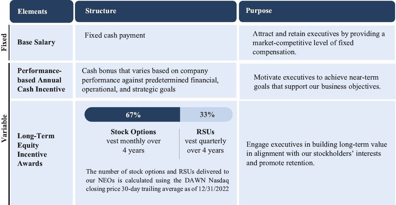 You may vote via the virtual meeting website-any stockholder can attend the Annual Meeting by visiting www.virtualshareholdermeeting.com/DAWN2024, where stockholders may vote and submit questions during the meeting. The meeting starts at 9:00 a.m. Pacific Time. Please have your 16-Digit Control Number to join the Annual Meeting. Instructions on how to attend and participate via the Internet, including how to demonstrate proof of stock ownership, are posted at www.virtualshareholdermeeting.com/DAWN2024. | | | You may vote by telephone or through the Internet-in order to do so, please follow the instructions shown on your proxy card. | | | You may vote by mail-if you request or receive a paper proxy card and voting instructions by mail, simply complete, sign and date the enclosed proxy card and promptly return it in the envelope provided or, if the envelope is missing, please mail your completed proxy card to Vote Processing, c/o Broadridge, 51 Mercedes Way, Edgewood, New York 11717. Your completed, signed, and dated proxy card must be received prior to the Annual Meeting. |