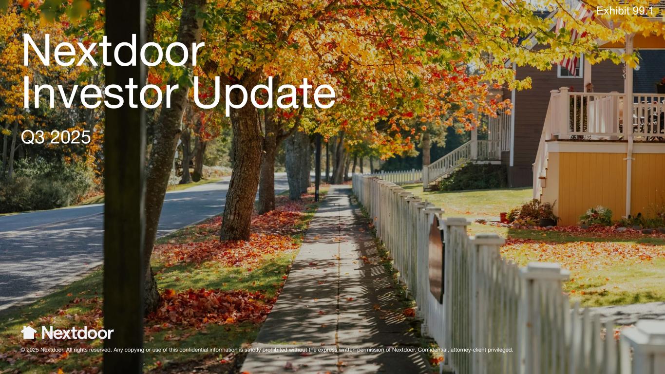 Nextdoor Investor Update Q3 2025 © 2025 Nextdoor. All rights reserved. Any copying or use of this confidential information is strictly prohibited without the express written permission of Nextdoor. Confidential, attorney-client privileged.