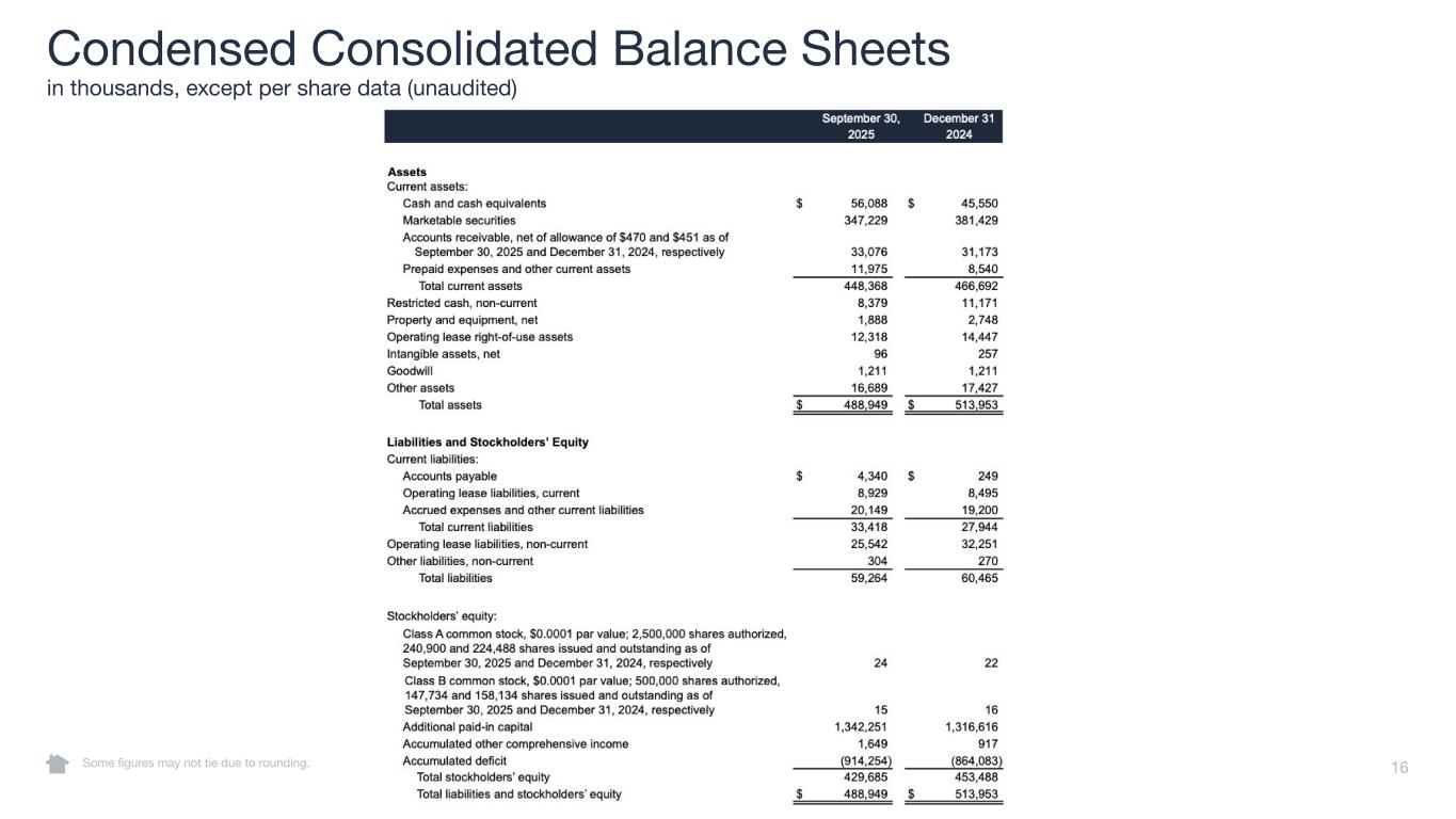 16 Condensed Consolidated Balance Sheets in thousands, except per share data (unaudited) Some figures may not tie due to rounding.