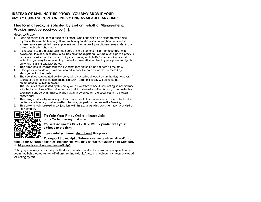 Your proxy card must be received by our proxy tabulator, Odyssey Trust Company, no later than [●] (Central Time) on [●], 2025 or, if the Meeting is adjourned, at least 48 hours (excluding Saturdays, Sundays and statutory holidays in the Province of British Columbia) before the beginning of the Meeting following any adjournments thereof. If you are a non-registered holder, please provide your voting directions by the time specified by your intermediary.