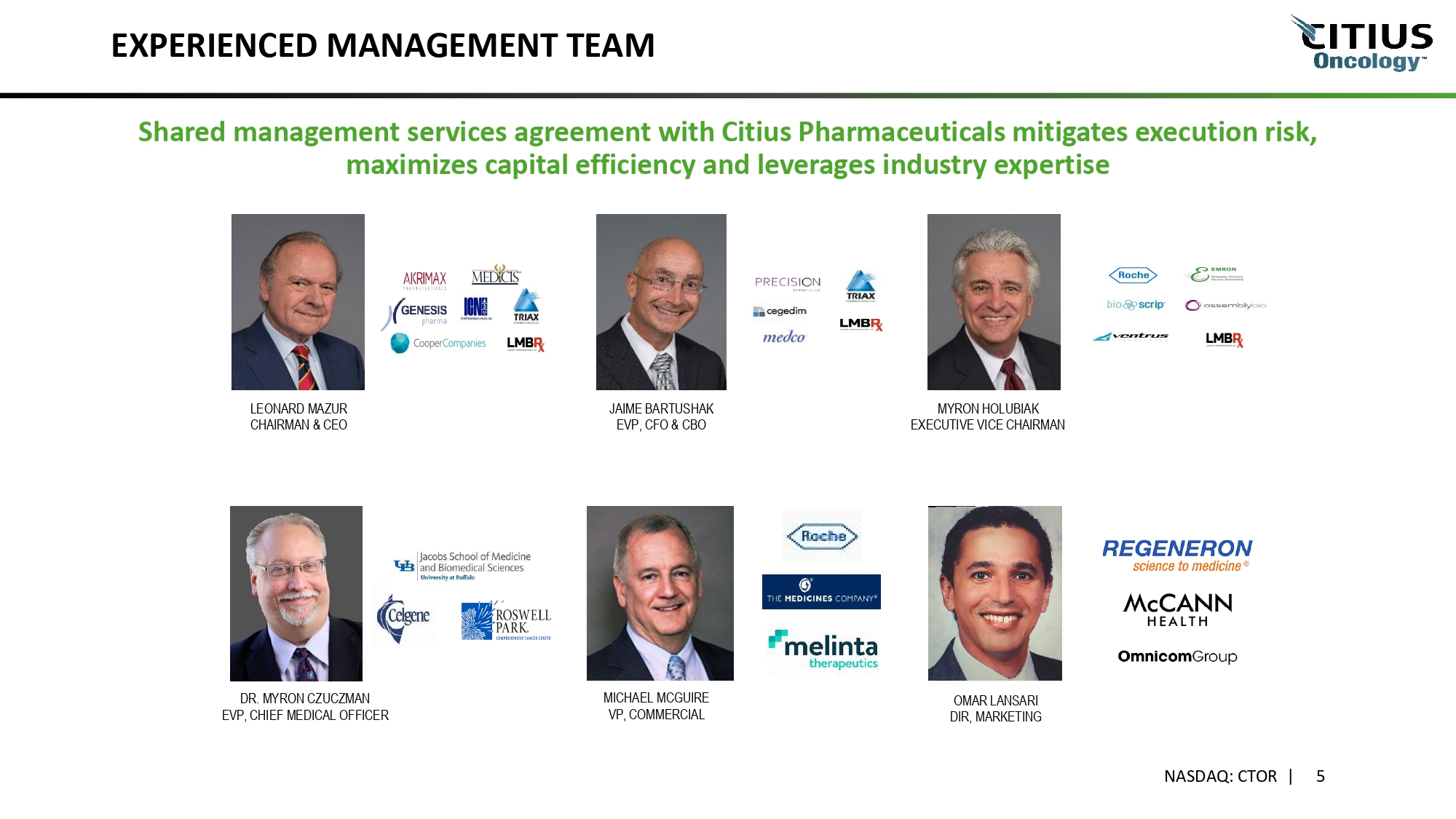 INDICATION: LYMPHIR is an IL2 - receptor - directed cytotoxin indicated for the treatment of adult patients with relapsed or refractory Stage I - III cutaneous T - cell lymphoma (CTCL) after at least one prior systemic therapy • First marketed product by Citius Oncology • Commercial supply shipped to national wholesalers • Accessible to providers and patients across the U.S. LYMPHIR NOW COMMERCIALLY AVAILABLE IN THE U.S. NASDAQ: CTOR | 4