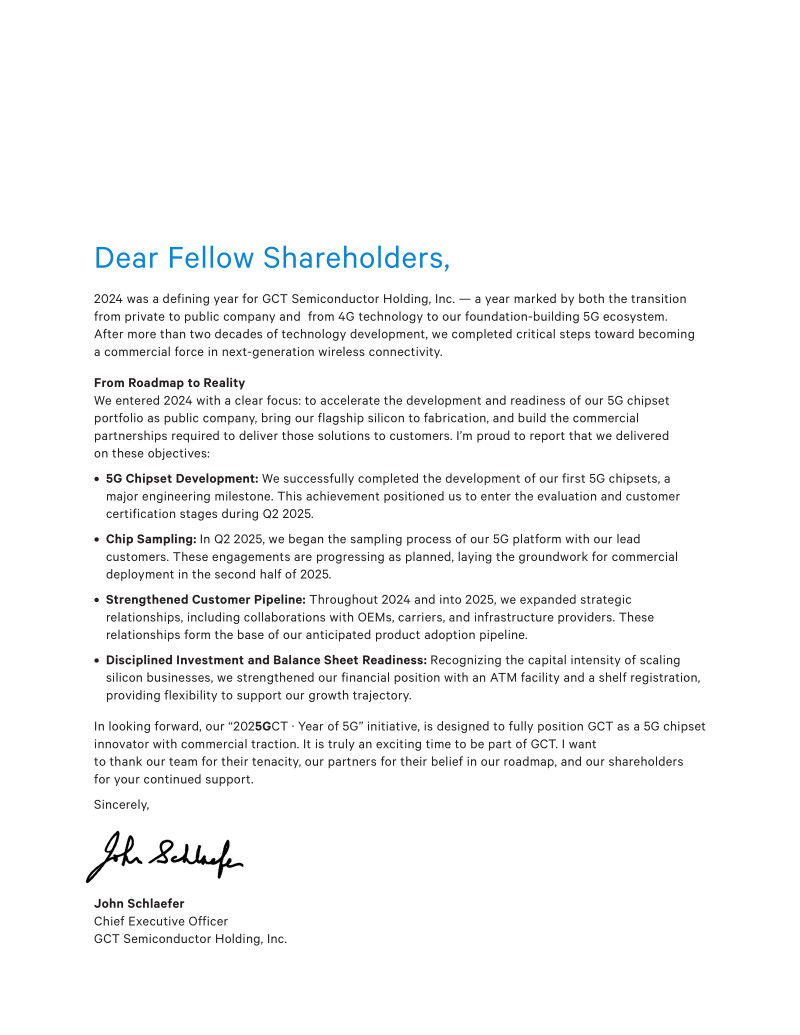 Loan Agreement, dated November 11, 2024, by and between Dr. Kyeongho Lee and GCT Research, Inc. |