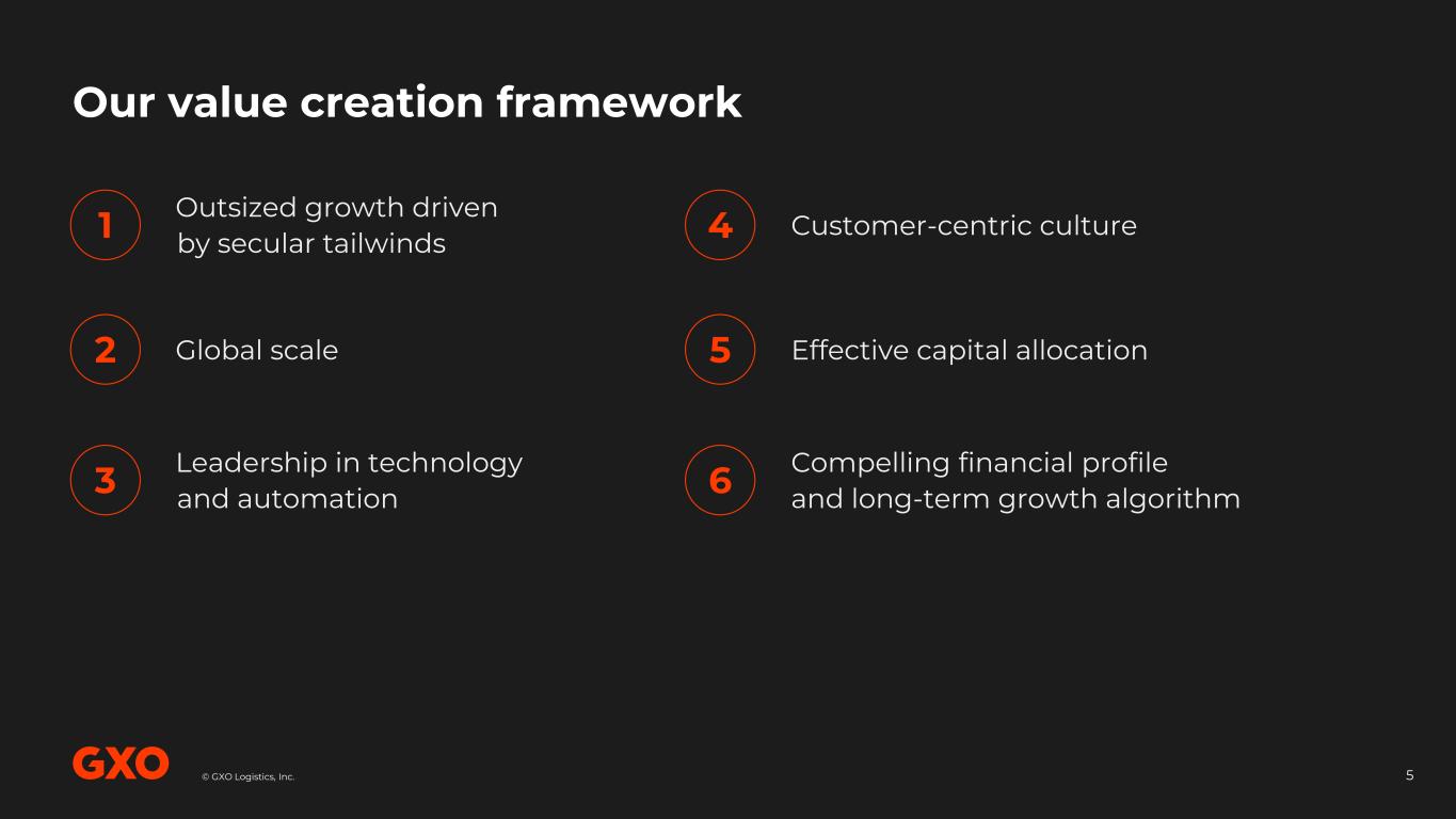 © GXO Logistics, Inc.© GXO Logistics, Inc. GXO is building the supply chain of the future. We design and operate the most technologically advanced logistics solutions in the world. 4
