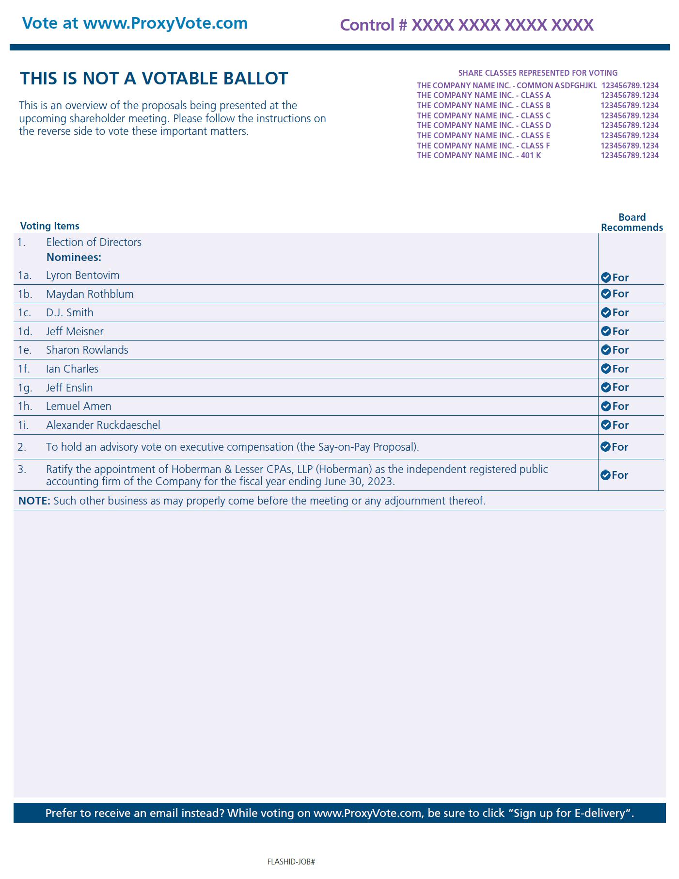 | (3) | You may vote online. You may use the website www.proxyvote.com to transmit your voting instructions and for electronic delivery of information up until 11:59 p.m., EST, December 14, 2022. Have your proxy card in hand when you access the website and follow the instructions to obtain your records and to create an electronic voting instruction form. | |
