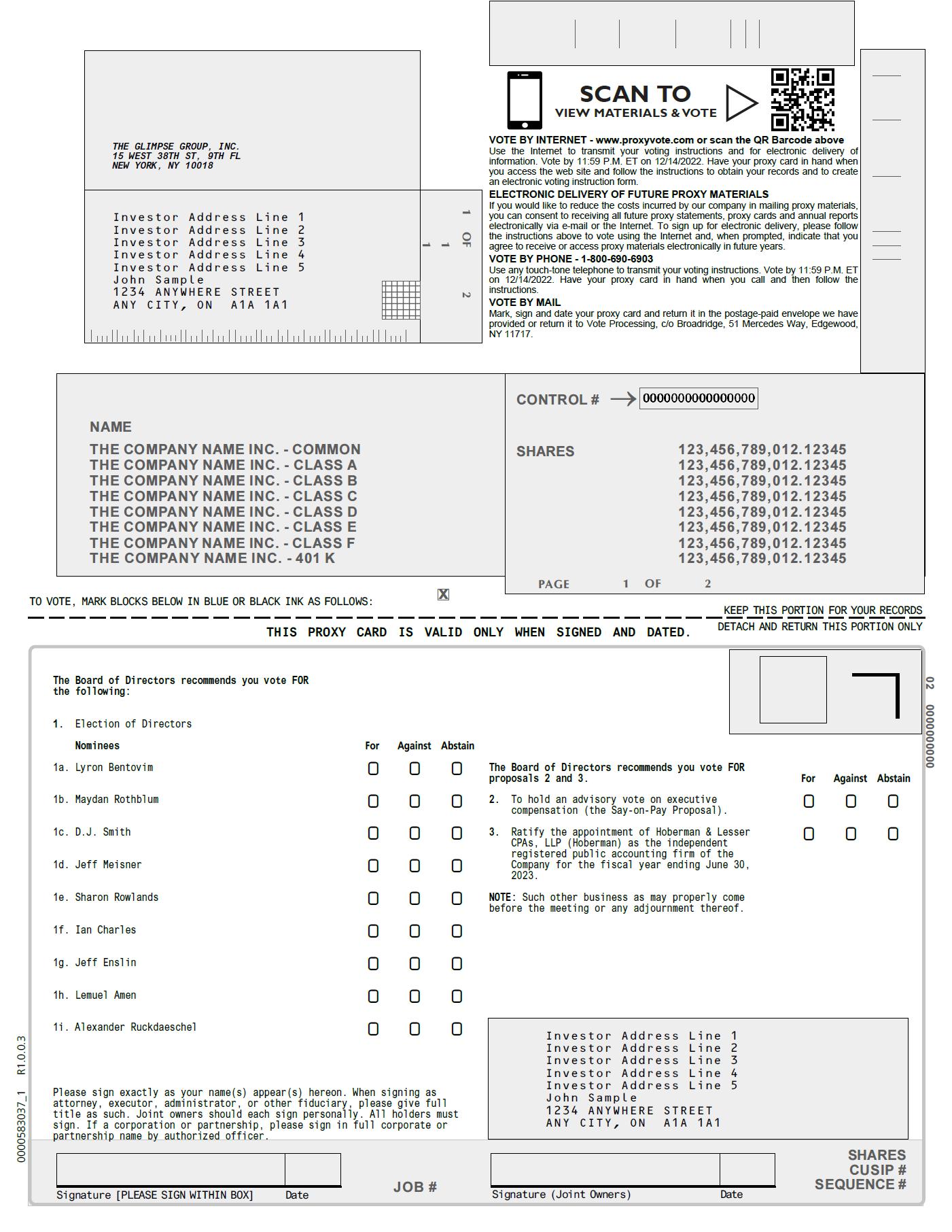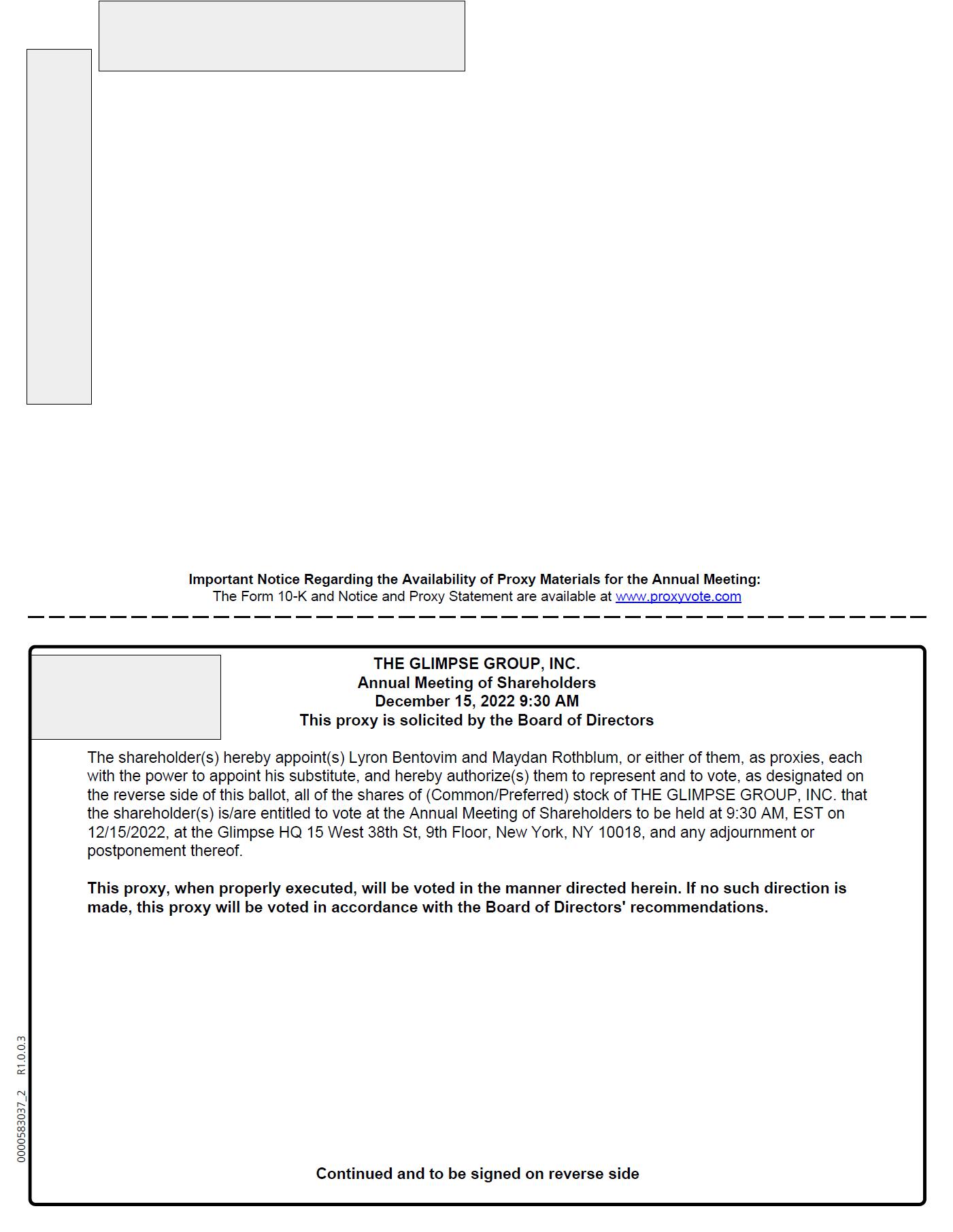 Important Notice Regarding the Availability of Proxy Materials for the Annual Meeting: The Notice & Proxy Statement and the Annual Report are available at https://ir.theglimpsegroup.com/corpgov/.