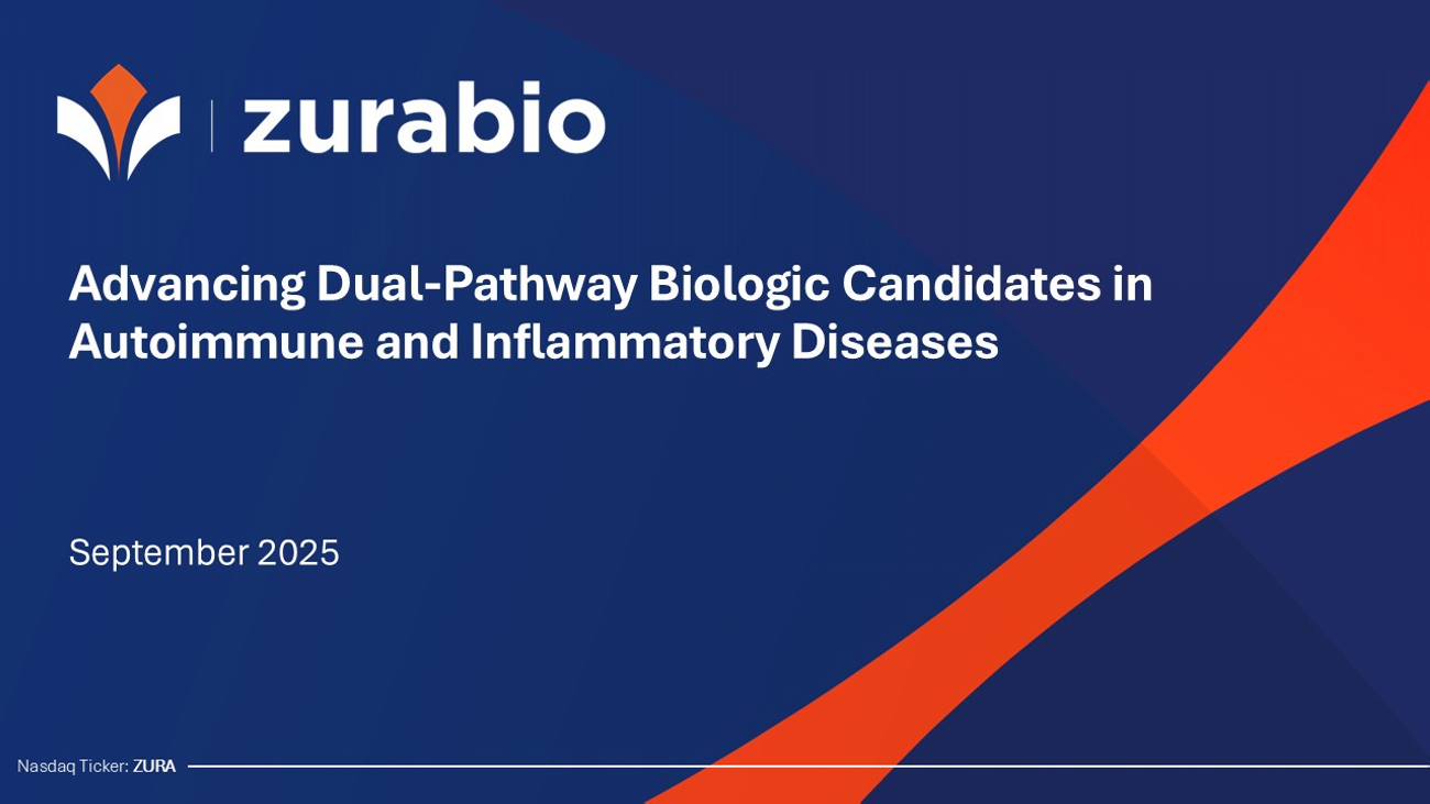 Advancing Dual - Pathway Biologic Candidates in Autoimmune and Inflammatory Diseases September 2025 Nasdaq Ticker: ZURA