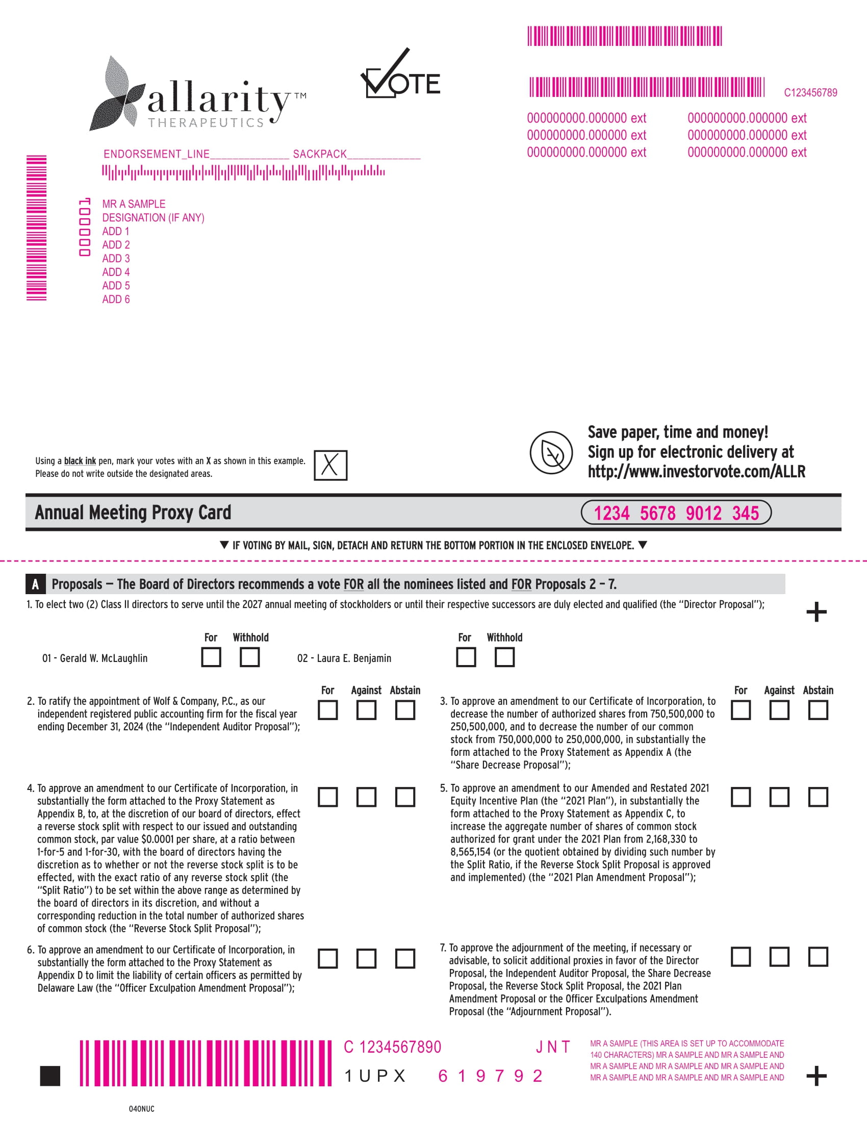 On or about July 1, 2024, this Proxy Statement, an accompanying proxy card, the Notice Card and the 2023 Form 10-K, will be mailed to stockholders and will be made available to stockholders on our Investor Relations website at https://www.edocumentview.com/ALLR2024. Our website is not part of this Proxy Statement; references to our website address in this Proxy Statement are intended to be inactive textual references only.