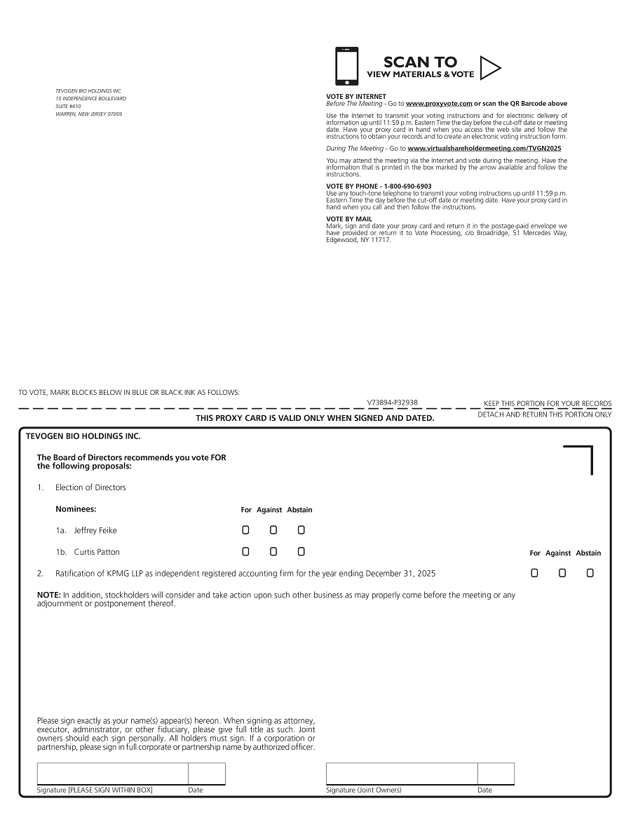 We encourage all stockholders of record to read the attached proxy statement with care and vote right away using any of the following methods, even if they intend to attend the Annual Meeting. If you plan to vote during the Annual Meeting, you may do so if you enter your “control number.” The control number is a 16-digit number that you can find in your Notice (if you received the proxy materials via electronic delivery), voting instruction form (if you are a beneficial owner who received proxy materials by mail), or proxy card (if you are a stockholder of record who received proxy materials by mail), as applicable, at the time you log into the meeting at www.virtualshareholdermeeting.com/TVGN2025. Please note, however, that if your shares are held of record by a broker, bank, or other nominee and you wish to vote at the meeting, you may need to obtain a proxy issued in your name from that record holder. Please contact your broker, bank, or other nominee for information about specific requirements if you would like to vote your shares at the meeting.