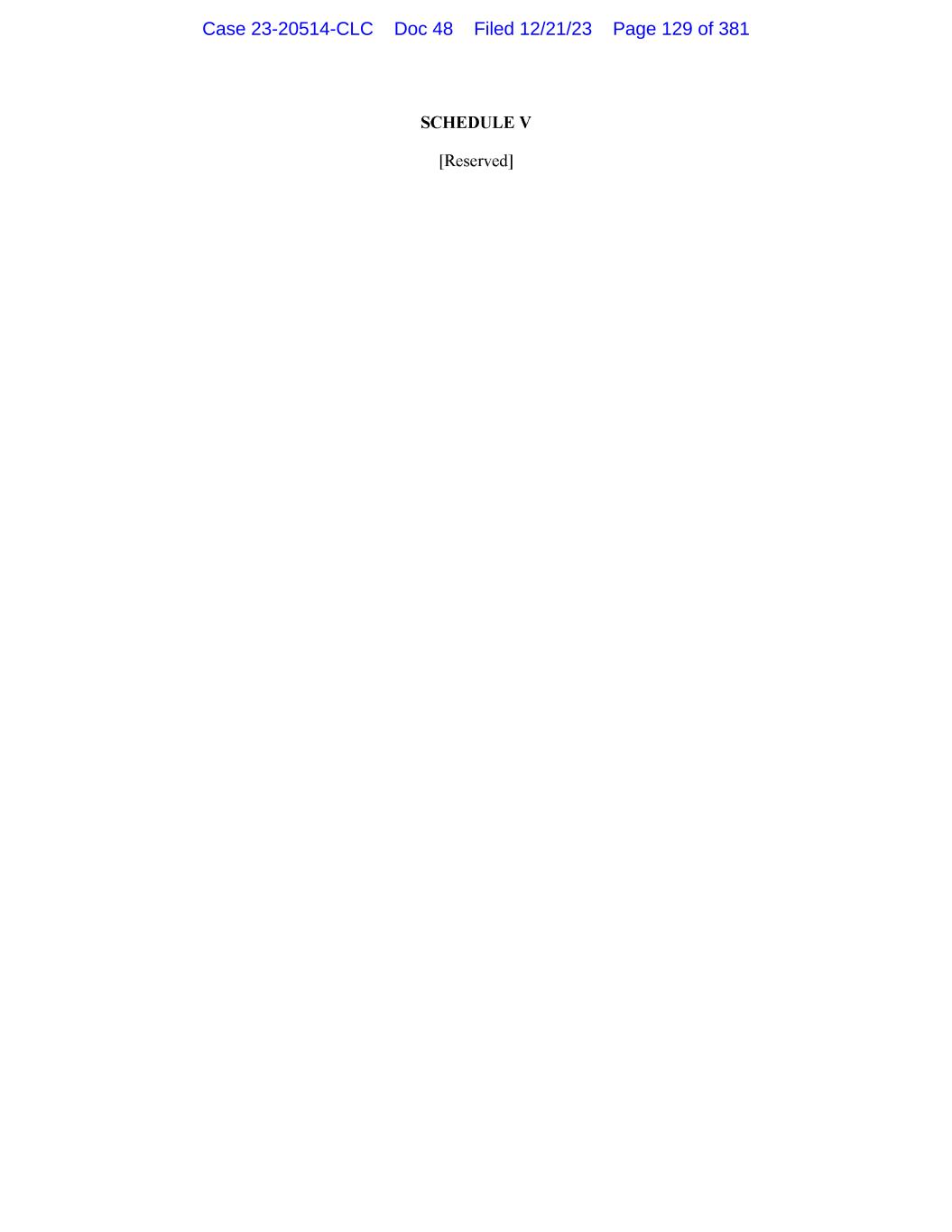 TABLE OF CONTENTS (continued) -iii- Page SECTION 14.14 Intent of the Parties................................................................................................... 72 SECTION 14.15 USA Patriot Act.........................................................................................................72 SECTION 14.16 Right of Setoff...........................................................................................................72 SECTION 14.17 Severability.................................................................................................................72 SECTION 14.18 Mutual Negotiations................................................................................................. 72 SECTION 14.19 Captions and Cross References.............................................................................. 73 SECTION 14.20 Parties Including Trustees; Bankruptcy Court Proceedings...............................73 SECTION 14.21 Inconsistency............................................................................................................. 73 SECTION 14.22 Pre-Petition Lender Consent....................................................................................73 SECTION 14.23 Lender Consent to Credit Bid..................................................................................74 SCHEDULES SCHEDULE I - DIP Term Loan Commitments SCHEDULE II - [Reserved] SCHEDULE III - [Reserved] SCHEDULE IV - [Reserved] SCHEDULE V - Notice Addresses EXHIBITS EXHIBIT A - Form of Loan Request EXHIBIT B - [Reserved] EXHIBIT C - Form of Assignment and Acceptance Agreement EXHIBIT D - [Reserved] EXHIBIT E - [Reserved] EXHIBIT F - [Reserved] EXHIBIT G - U.S. Tax Compliance Certificates EXHIBIT H - [Reserved] EXHIBIT I - Interim Order EXHIBIT J - Closing Checklist Case 23-20514-CLC Doc 48 Filed 12/21/23 Page 47 of 381