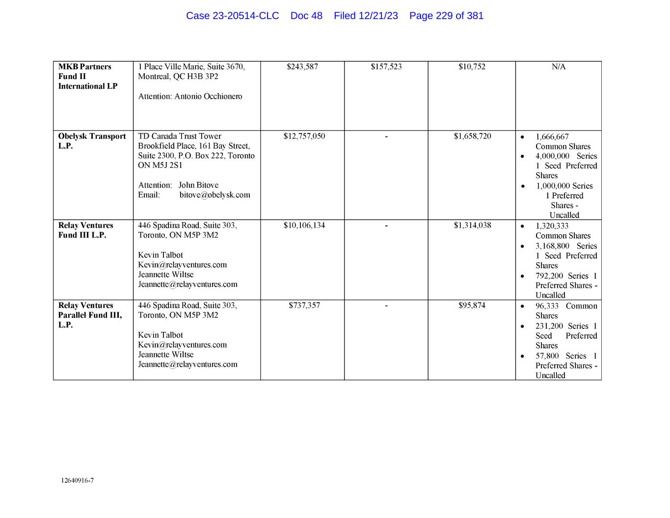 SECOND LIEN LENDERS: RELAY VENTURES FUND III L.P, by its general partner, RELAY VENTURES FUND III GP INC. By: ttAMI/L Name: Kevin Talbot Title: Director By: JuwUAuffc Name: Jeannette Wiltse Title: Director RELAY VENTURES PARALLEL FUND III L.P., by its general partner, RELAY VENTURES FUND III GP INC. By: ttAMI/b Name: Kevin Talbot Title: Director By: JuwUAuffc Name: Jeannette Wiltse Title: Director RELAY VENTURES COMPASS LP, by its general partner, RELAY VENTURES COMPASS GP INC. By: tuAik TaM Name: Kevin Talbot Title: Director By: Name: Jeannette Wiltse Title: Director [Signature Page to Restructuring Support Agreement] Case 23-20514-CLC Doc 48 Filed 12/21/23 Page 22 of 381