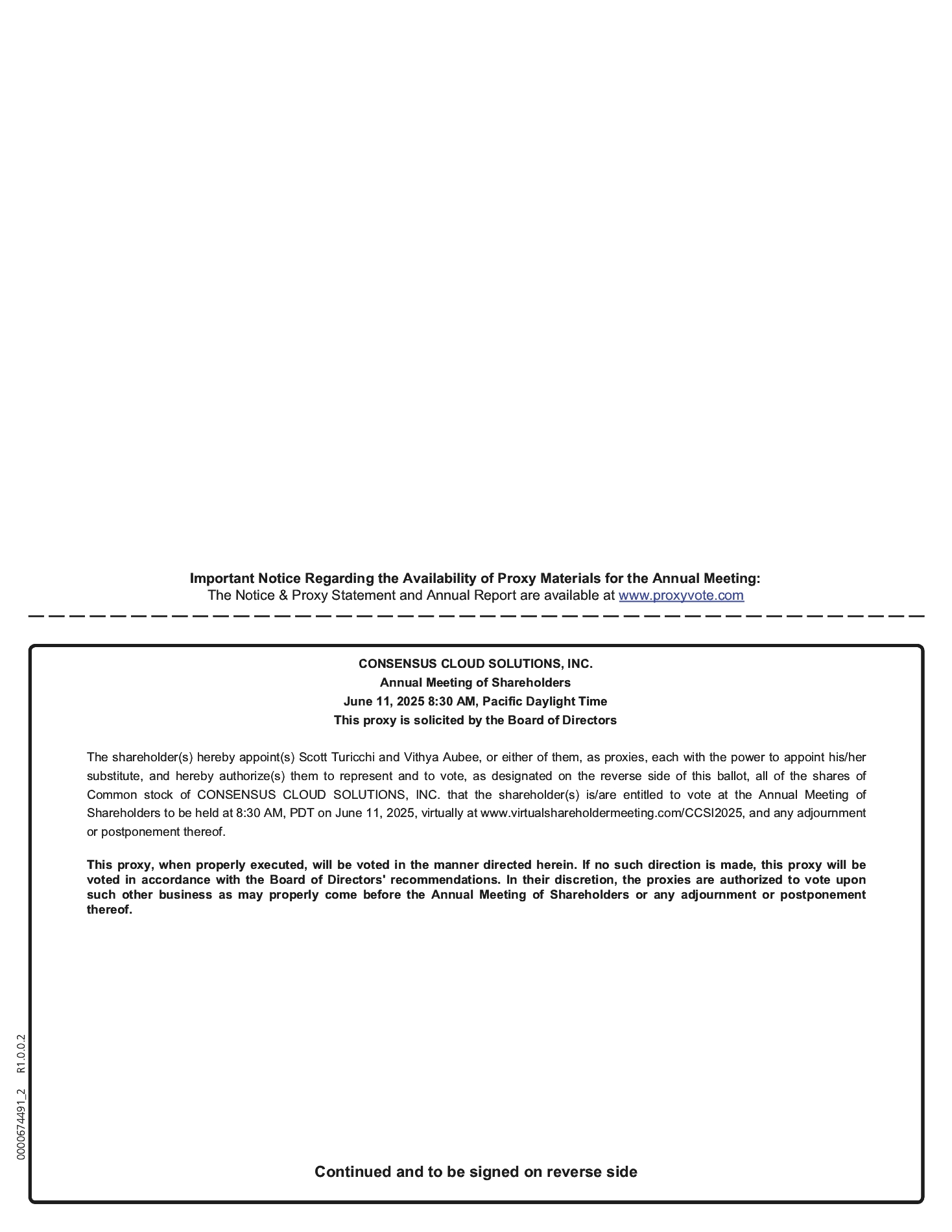 During the Annual Meeting, you may vote online at www.virtualshareholdermeeting.com/CCSI2025