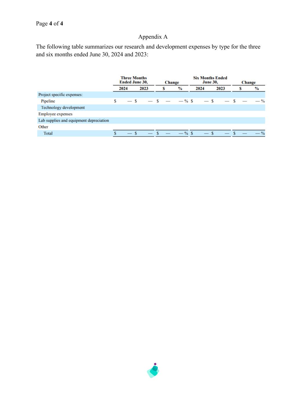 Page 4 of 4 Appendix A The following table summarizes our research and development expenses by type for the three and six months ended June 30, 2024 and 2023: