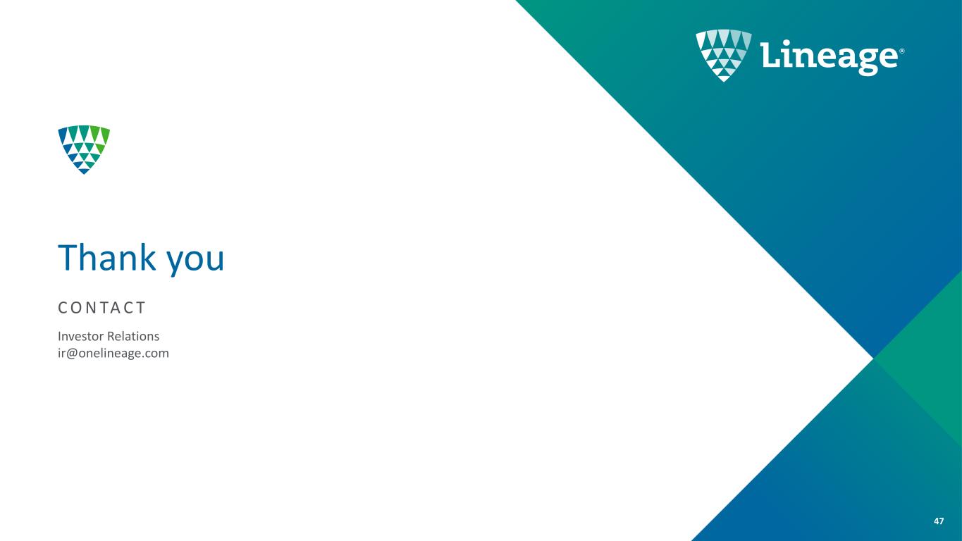 C O N TA C T Thank you 47 Investor Relations ir@onelineage.com