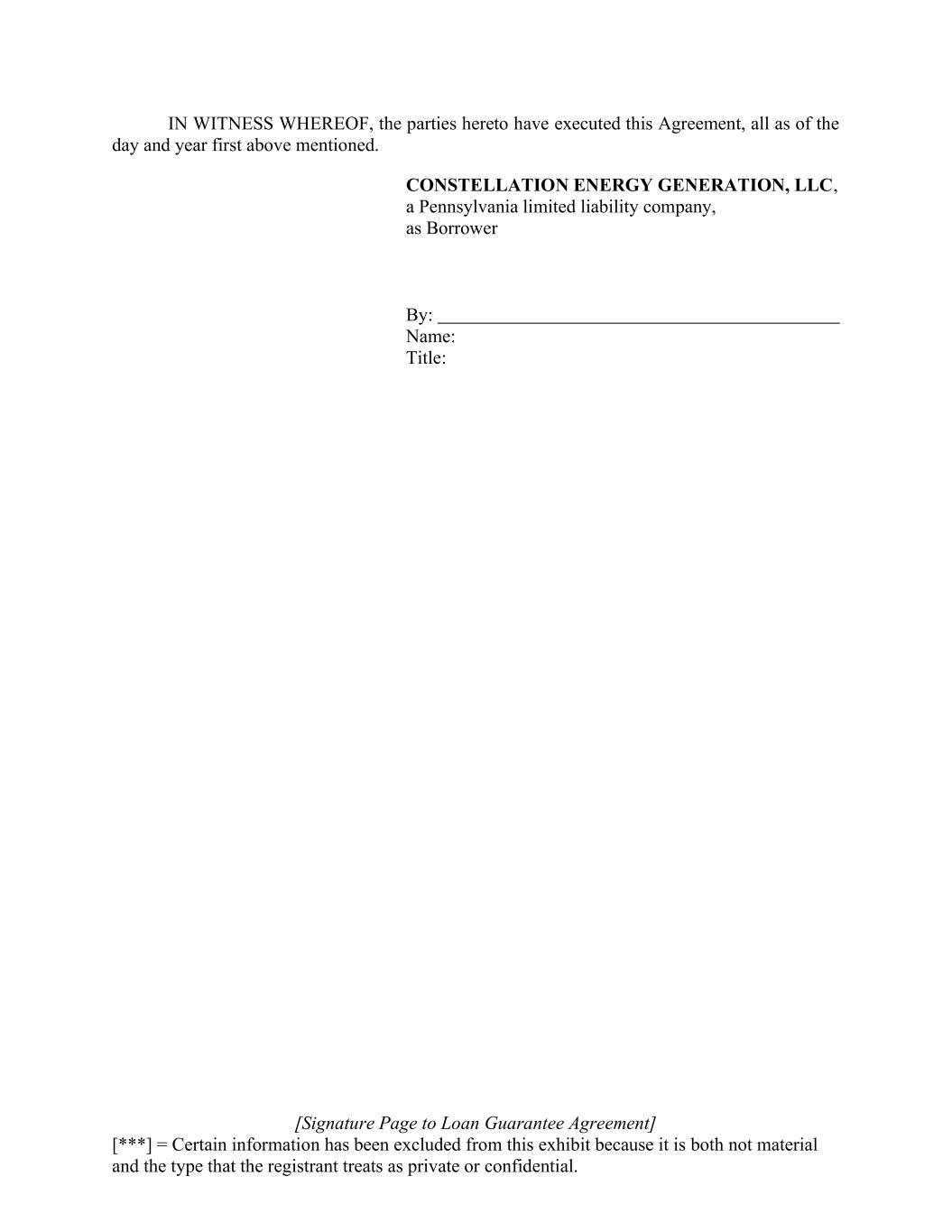 [Signature Page to Loan Guarantee Agreement] [***] = Certain information has been excluded from this exhibit because it is both not material and the type that the registrant treats as private or confidential. IN WITNESS WHEREOF, the parties hereto have executed this Agreement, all as of the day and year first above mentioned. CONSTELLATION ENERGY GENERATION, LLC, a Pennsylvania limited liability company, as Borrower By: Name: Title: