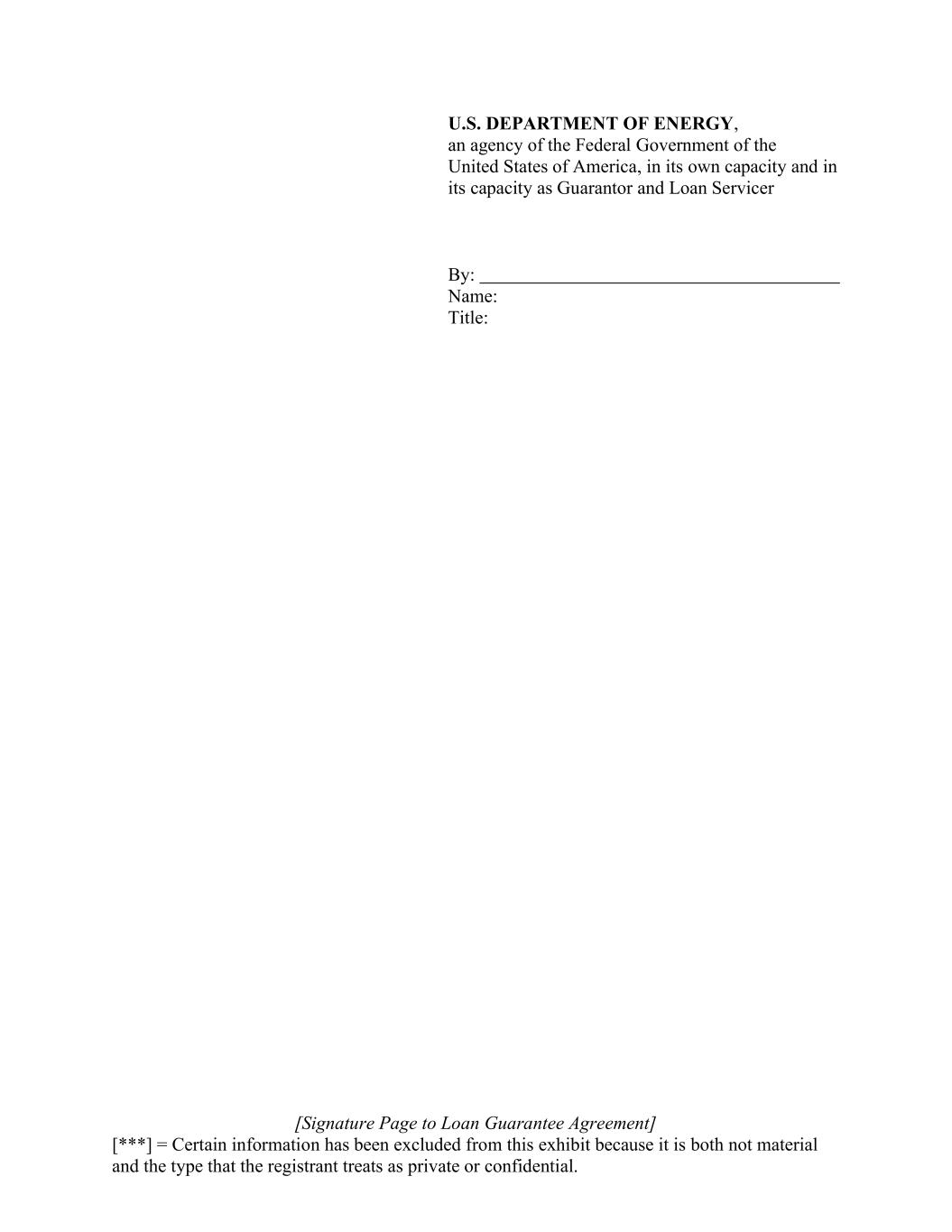 [Signature Page to Loan Guarantee Agreement] [***] = Certain information has been excluded from this exhibit because it is both not material and the type that the registrant treats as private or confidential. U.S. DEPARTMENT OF ENERGY, an agency of the Federal Government of the United States of America, in its own capacity and in its capacity as Guarantor and Loan Servicer By: Name: Title: