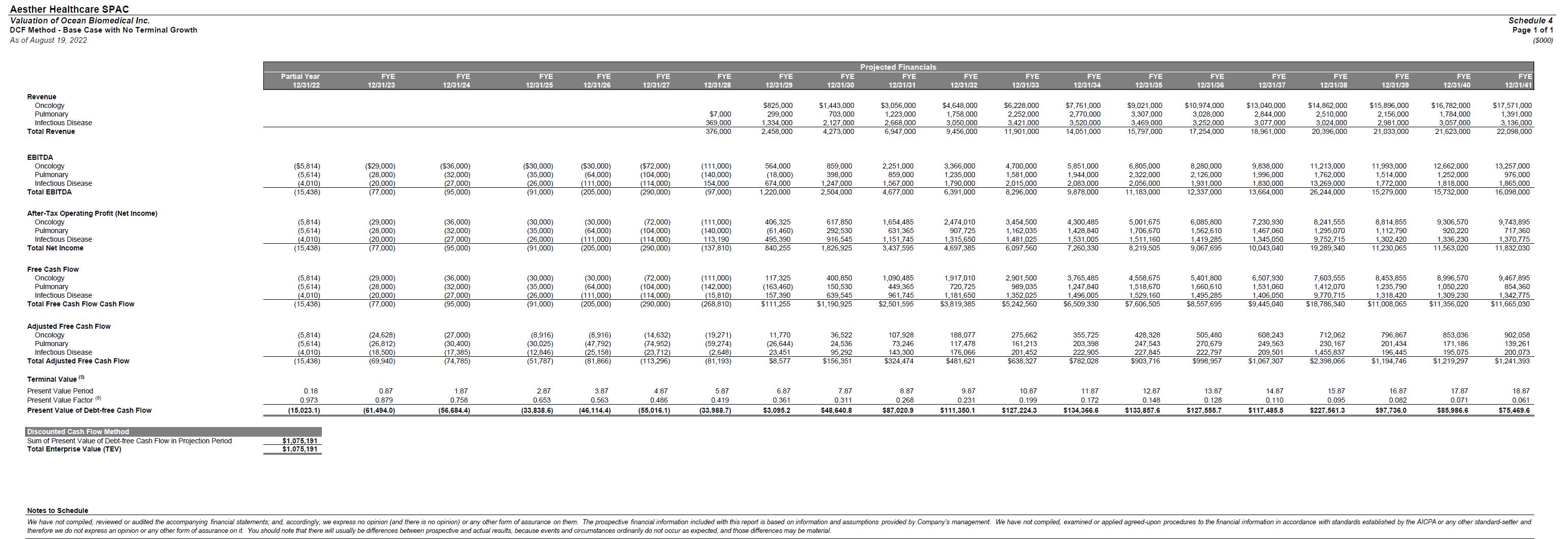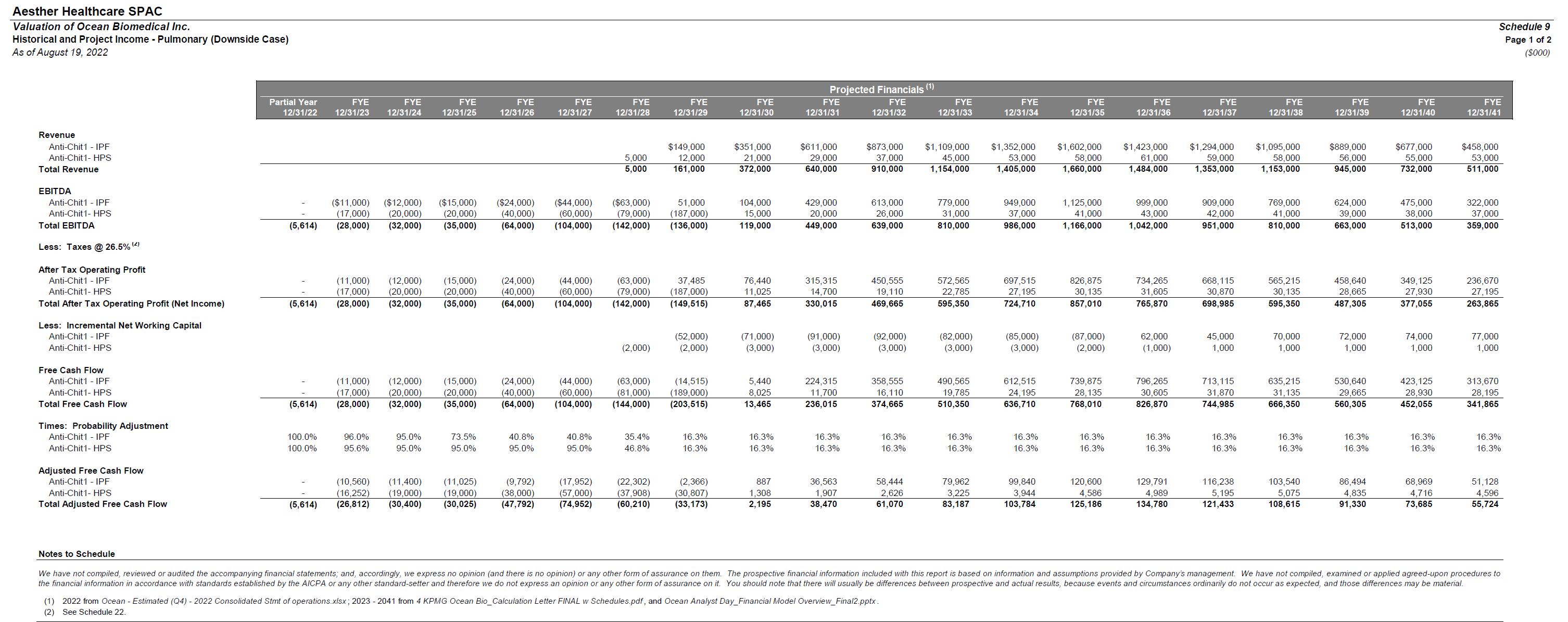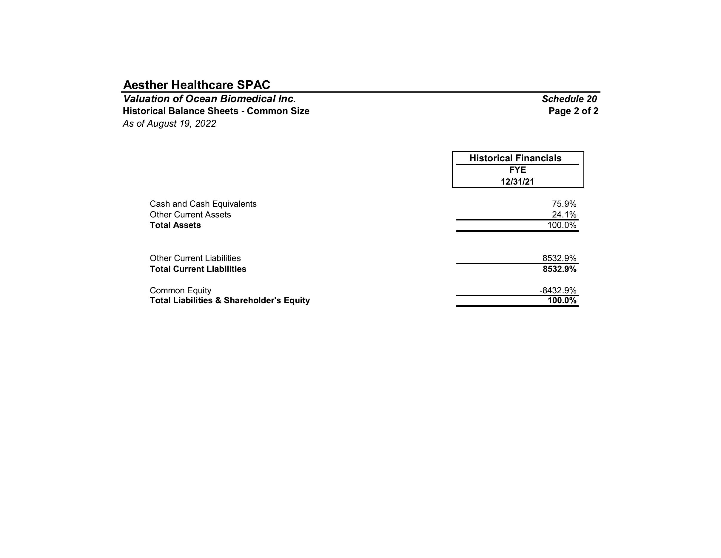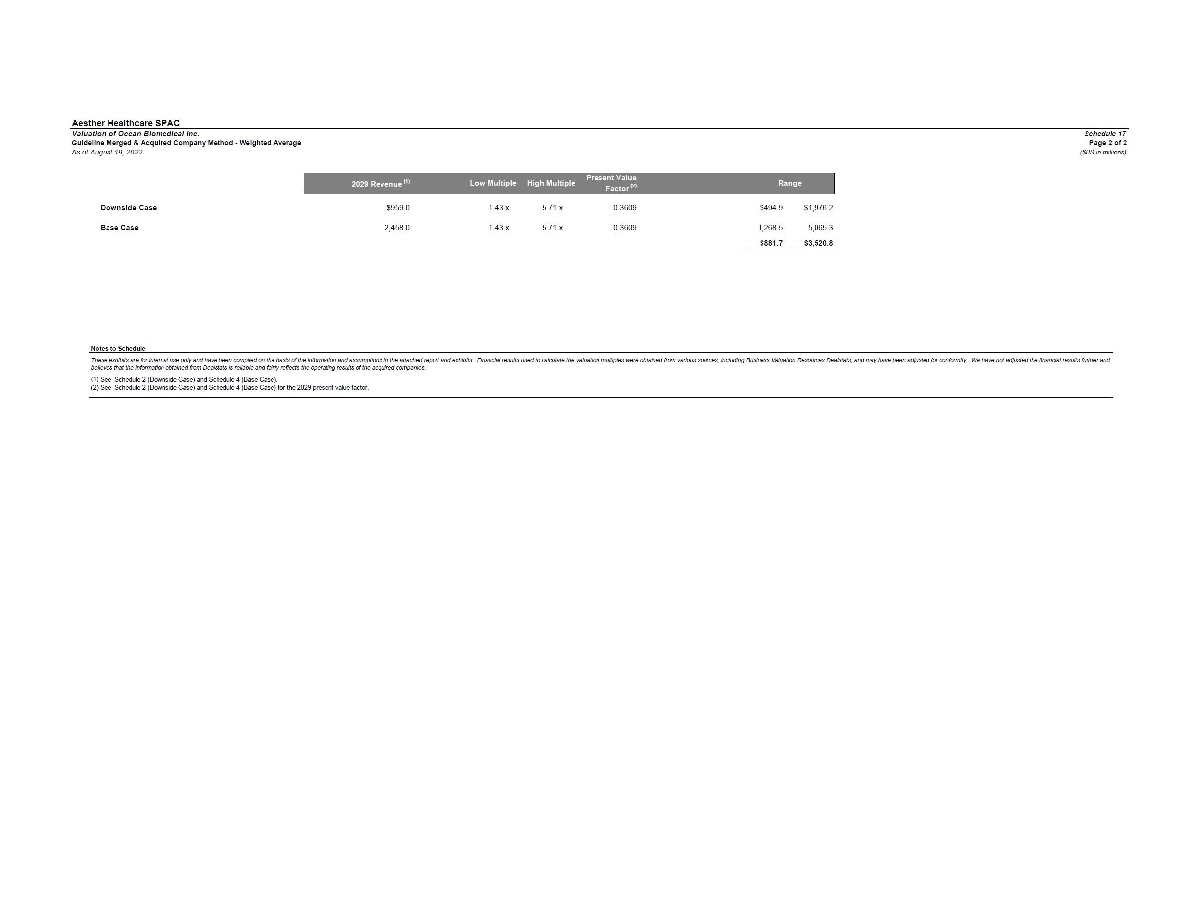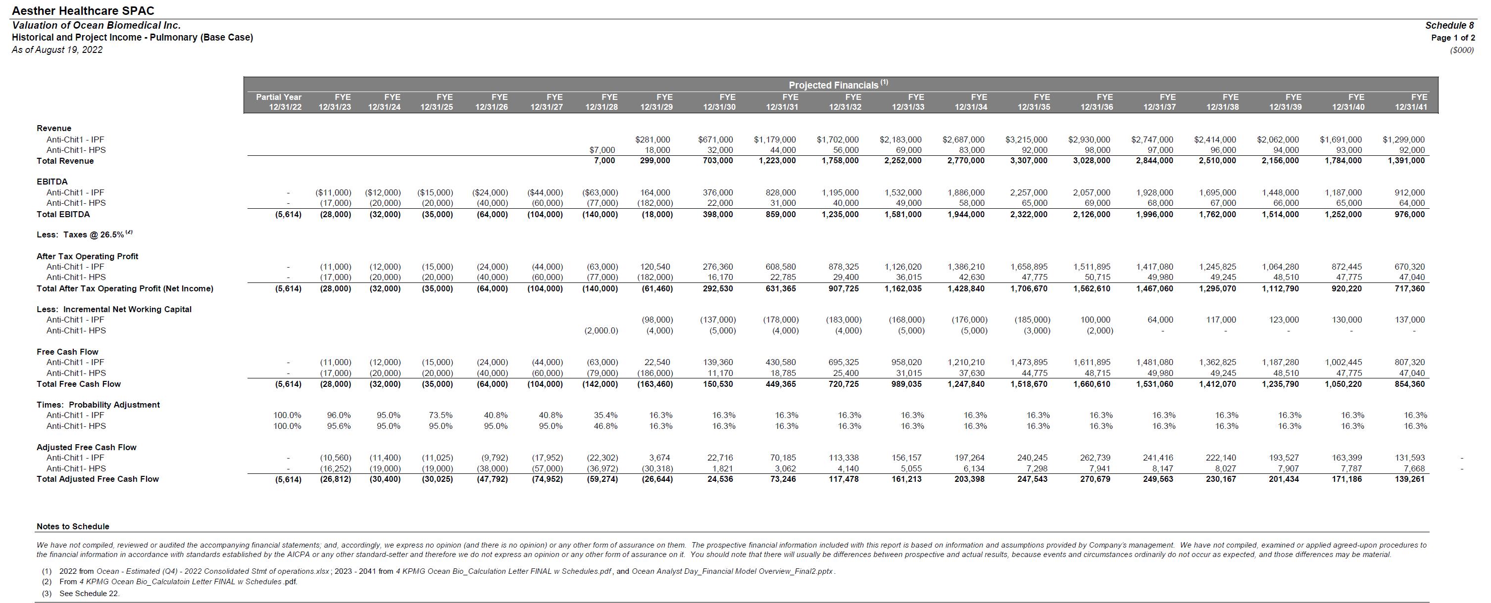 | (1) | The Business Combination Proposal — To adopt the Agreement and Plan of Merger, as amended, (the “Business Combination Agreement”), by and among AHAC Merger Sub Inc., a Delaware corporation and wholly-owned subsidiary of AHAC (“Merger Sub”), Ocean Biomedical, Inc., a Delaware corporation (“Ocean Biomedical”), Aesther Healthcare Sponsor, LLC, (“Sponsor”) in its capacity as Purchaser Representative, and Dr. Chirinjeev Kathuria, in his capacity as Seller Representative, pursuant to which at the closing of the transactions contemplated by the Business Combination Agreement (the “Closing”), Merger Sub will merge with and into Ocean Biomedical (the “Merger”), with Ocean Biomedical continuing as the surviving corporation and wholly-owned subsidiary of AHAC. |