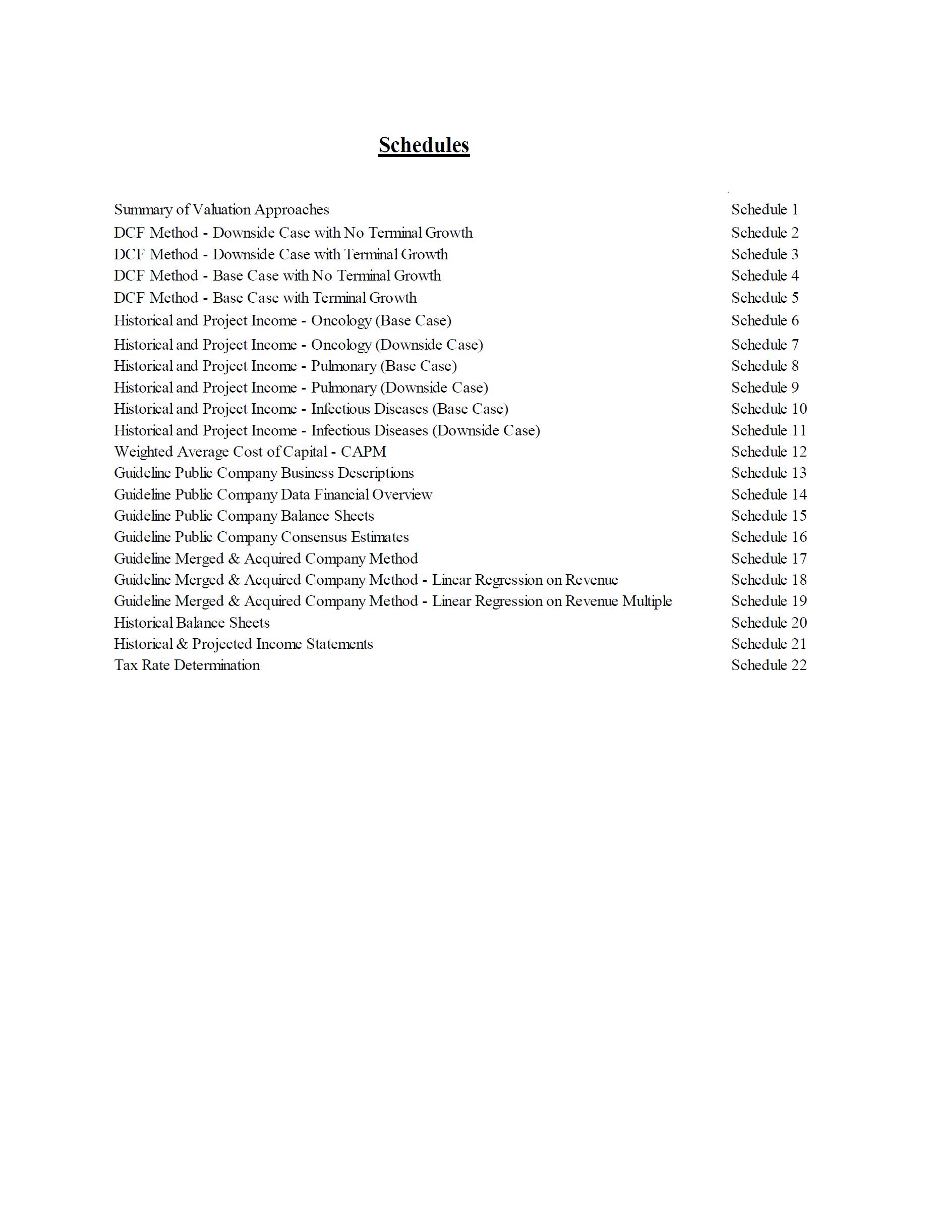 | Historical and Project Income - Pulmonary (Base Case) | Schedule 8 |