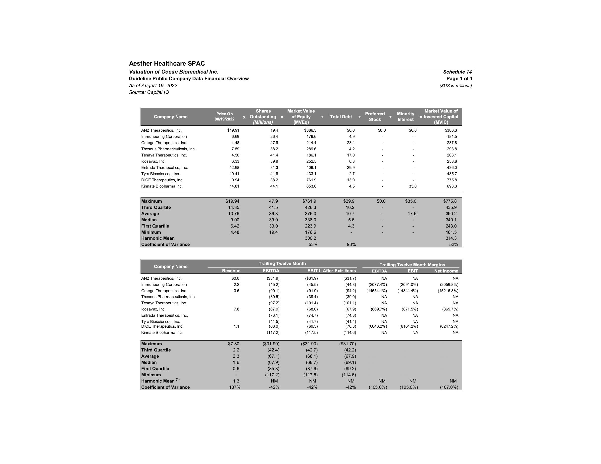 | Guideline Public Company Data Financial Overview | Schedule 14 |