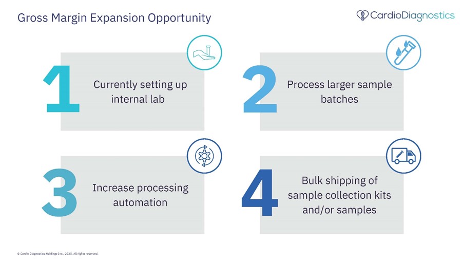 Gross Margin Expansion Opportunity 1 Currently setting up internal lab 3 Increase processing automation 2 Process larger sample batches 4 Bulk shipping of sample collection kits and/or samples © Cardio Diagnostics Holdings Inc., March 2024. All rights reserved.
