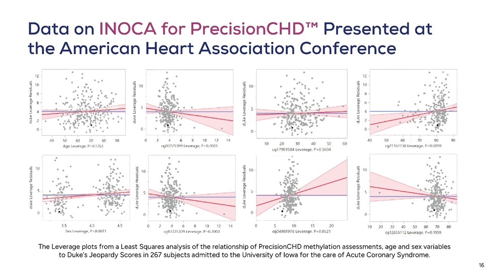 The Leverage plots from a Least Squares analysis of the relationship of PrecisionCHD methylation assessments, age and sex var iab les to Duke’s Jeopardy Scores in 267 subjects admitted to the University of Iowa for the care of Acute Coronary Syndrome. Data on INOCA for PrecisionCHD Presented at the American Heart Association Conference 16