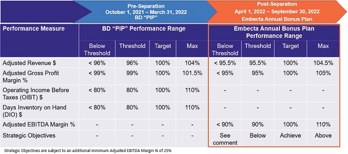 | (3) | Includes 42,423 shares issuable under the GSIP. It also includes 15 Embecta shares held under the DCP and 1,952 Embecta shares held under the DDP, resulting from the transfer of the balances of the corresponding BD plans, but no new shares can be credited to participants in these plans, and no shares are paid out to participants. |