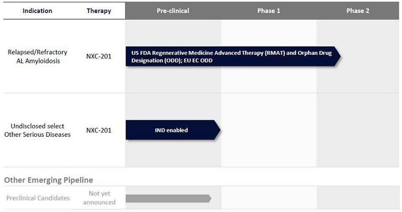 NXC-201 has been awarded Regenerative Medicine Advanced Therapy (“RMAT”) Designation by the FDA, Orphan Drug Designation (“ODD”) by both the FDA and European Commission (“EC”) in AL Amyloidosis and, most recently, in January 2026, Breakthrough Therapy designation by the FDA for the treatment of relapsed/refractory AL amyloidosis.