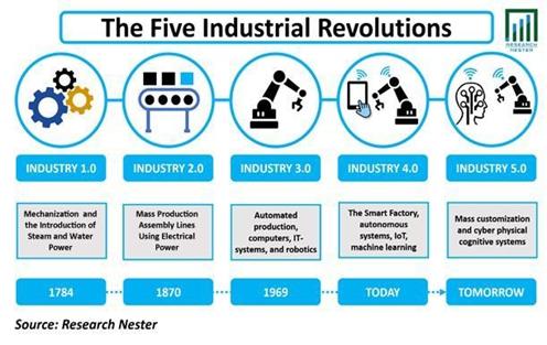 The fifth industrial revolution is upon us with self-driving industrial vehicles operating alongside with human workers and encompasses the benefits from the fourth industrial revolution of smart factories and automated supply chain logistics, with big data connectivity. According to Research Nester, they forecast the global industry 5.0 market to experience remarkable CAGR growth from 2022 - 2030 led by industrial internet of things, artificial intelligence with the alliance of humans and collaborative robots.