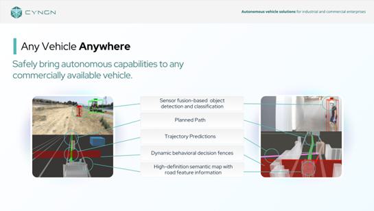 Our long-term vision is for our Enterprise Autonomy Suite (“EAS”)—which includes the DriveMod autonomous driving stack as well as the Cyngn Insight and Cyngn Evolve tools for fleet management, analytics, and data collection—to become a universal autonomous driving solution with minimal marginal cost for companies to adopt new vehicles and expand their autonomous fleets across new deployments. We have already deployed DriveMod software on more than ten different vehicle form factors that range from tow tractors and stand-on floor scrubbers to 14-seat shuttles and electric forklifts in a combination of commercially released products, prototypes, and proof of concept projects, demonstrating the extensibility of our AV building blocks.