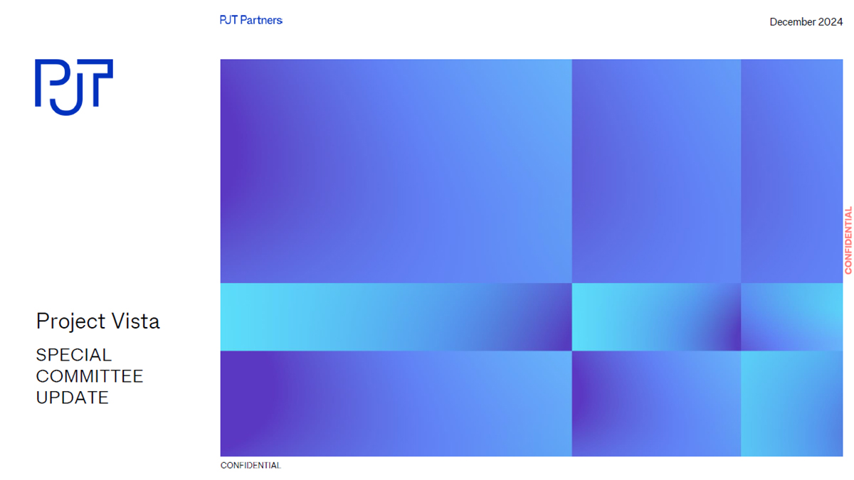 CONFIDENTIAL SPECIAL COMMITTEE UPDATE December 2024 Project Vista