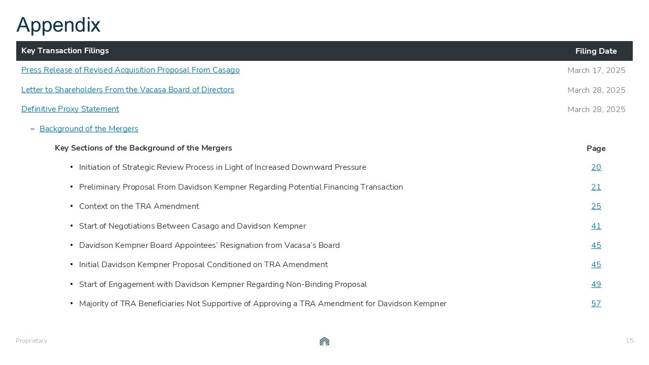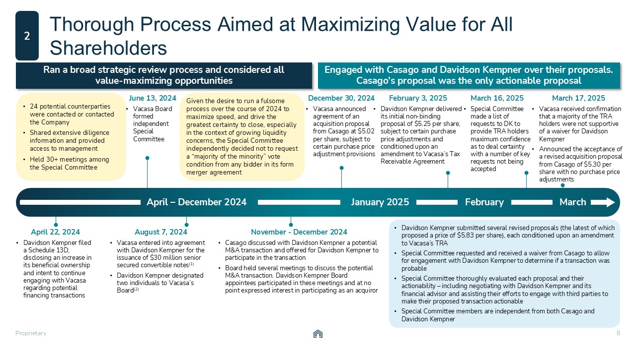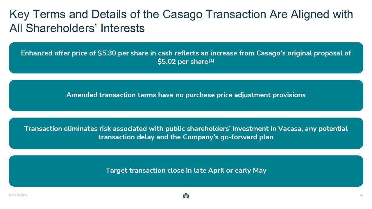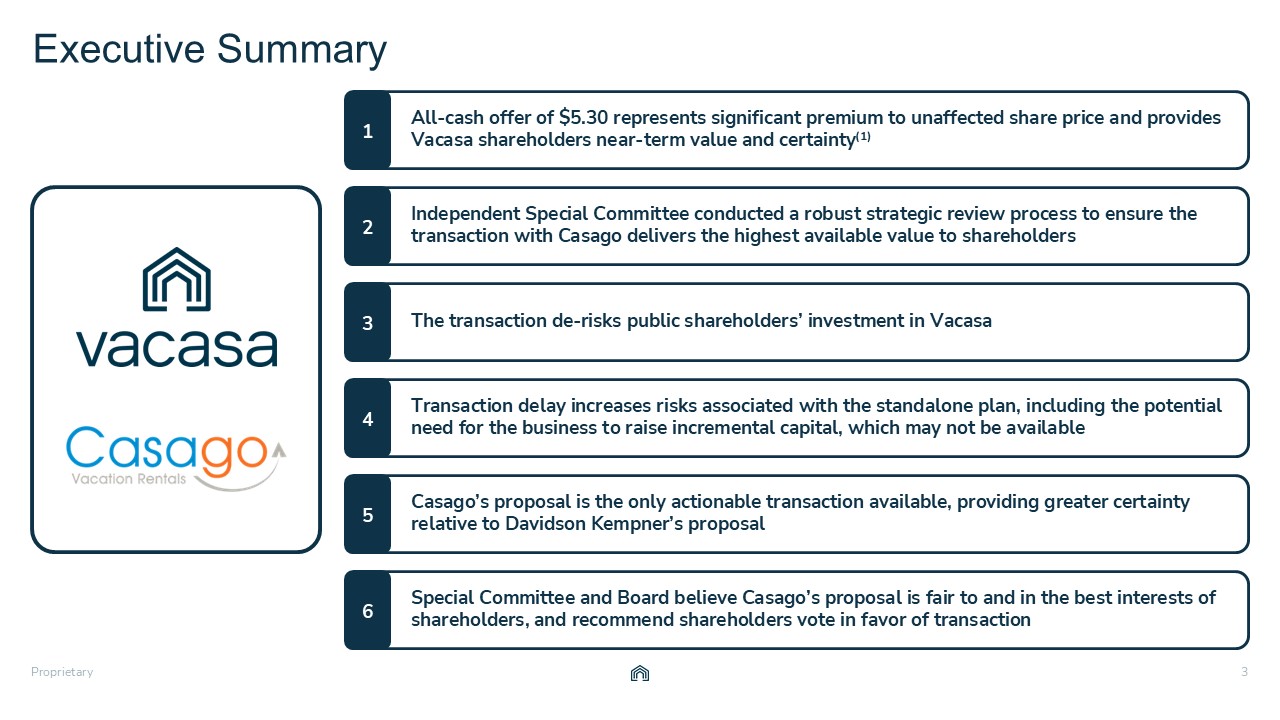 statement.  Additional Information and Where to Find It  The proposed transaction between the Company and Vacasa Holdings LLC and Casago Holdings, LLC (the “proposed transaction”) is expected to be submitted to the stockholders of the