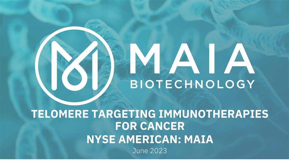 TELOMERE TARGETING IMMUNOTHERAPIES FOR CANCER NYSE AMERICAN: MAIA June 2023