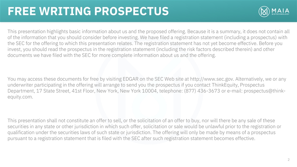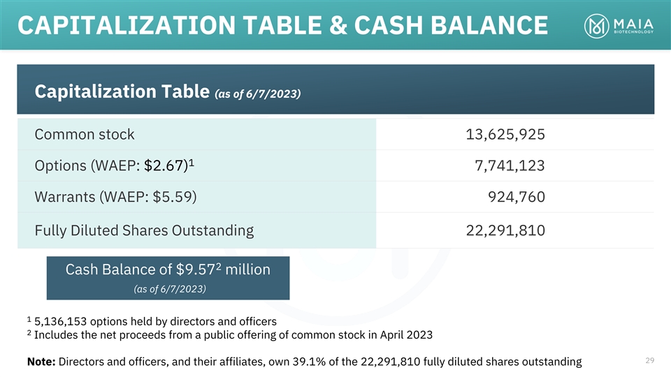 MAIA BIOTECHNOLOGY LISTED NYSE: MAIA July 28, 2022 34