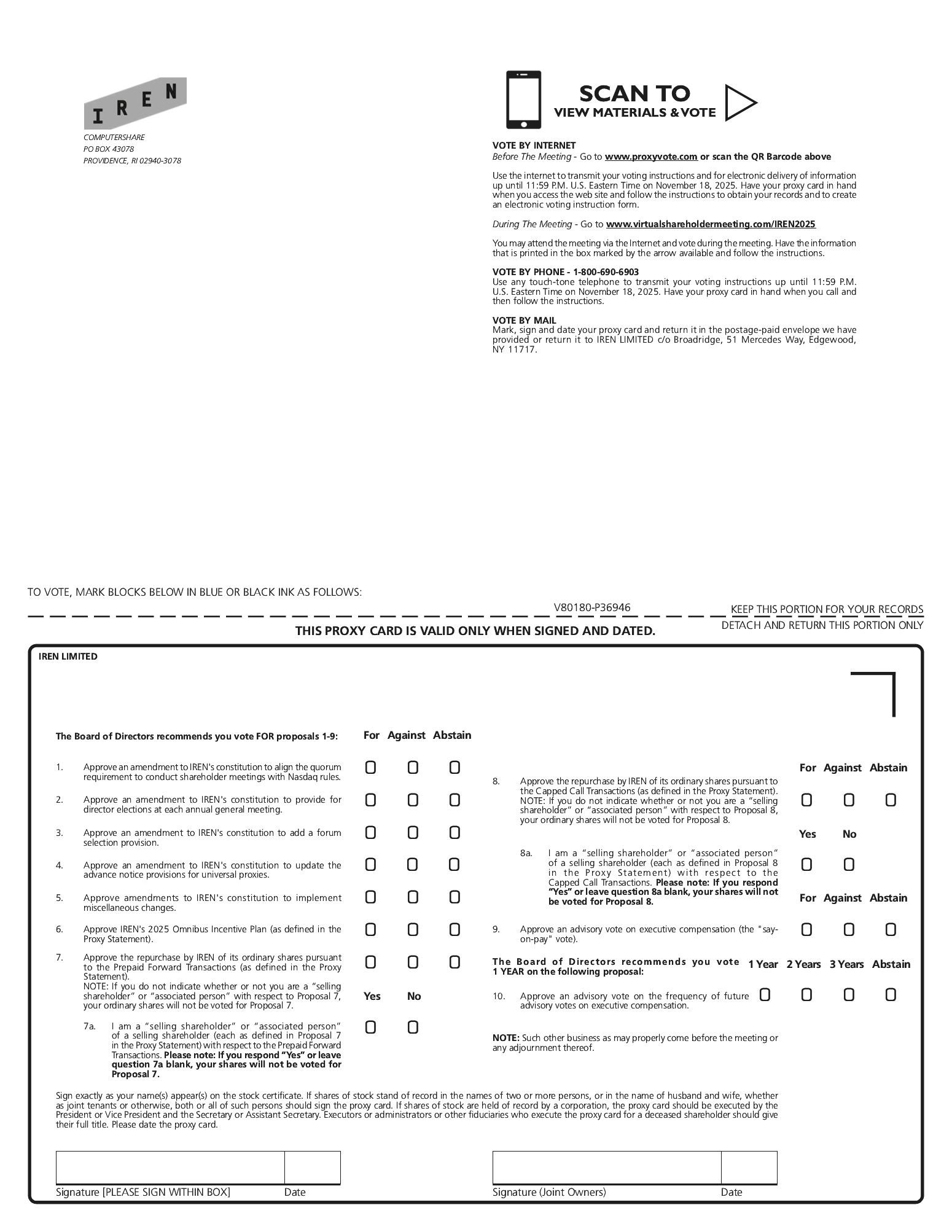 If you wish to attend the AGM, which is exclusively being held virtually, please enter the 16-digit control number located on the Notice of Internet Availability mailed to you beginning on October 6, 2025, on your proxy card or voting instruction form at www.virtualshareholdermeeting.com/IREN2025.
